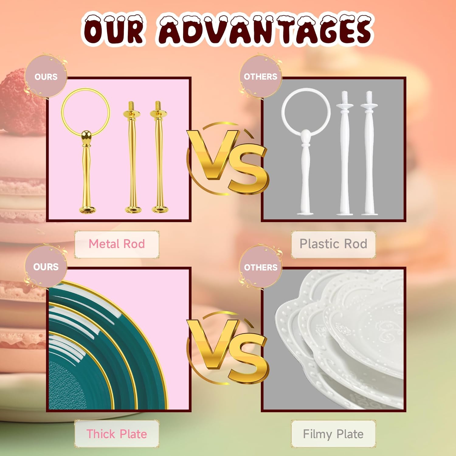 - [Versatile Party Supplies]: Whether you're hosting a themed birthday party, a delightful tea party, a charming baby shower, or a glamorous wedding, this tiered tray stand is perfect centerpiece for any dessert table. Your guests will be delighted as they indulge in the scrumptious treats beautifully displayed on this dessert stand