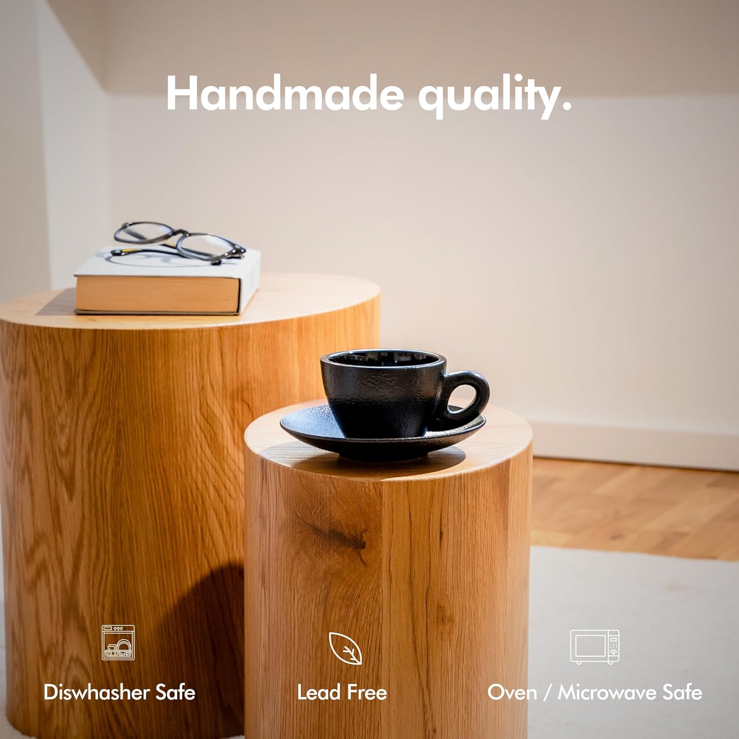 KIVY Cappuccino cups set of 4 [8oz] - Thick-walled stoneware cappuccino cup set for latte art - Latte mugs - Latte cups - Latte mug - Coffee cup black - Ceramic latte cup and saucer