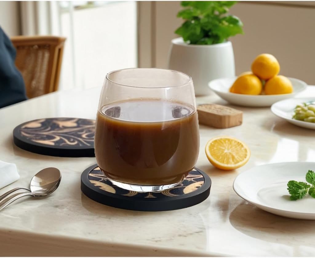 Absorbent Coasters for Drinks with Holder - 6packs, Silicone Coaster with Soft Felt Insert (4.3 inch Coasters with 4.5 inch Holder, Dual-Sided Flower -Themed Patterns)