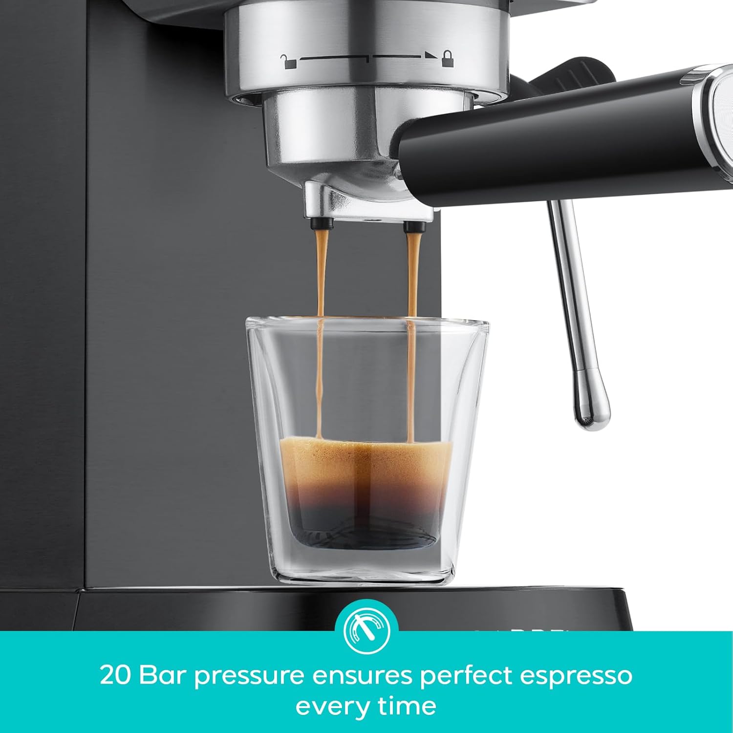 - Professional 20 Bar Pressure System: Semi-Automatic 2-in-1 Espresso Maker, with 20 bar professional Italian pump and 1350 W powerful motor. This compact espresso machine gives you top quality extraction, resulting in a more fragrant and rich aroma. The built-in pressure gauge on this cappuccino machine shows the exact pressure helping you make adjustments according to your personal taste preferences. You can create a cappuccino, latte or flat white at your home or office with our espresso coffee maker