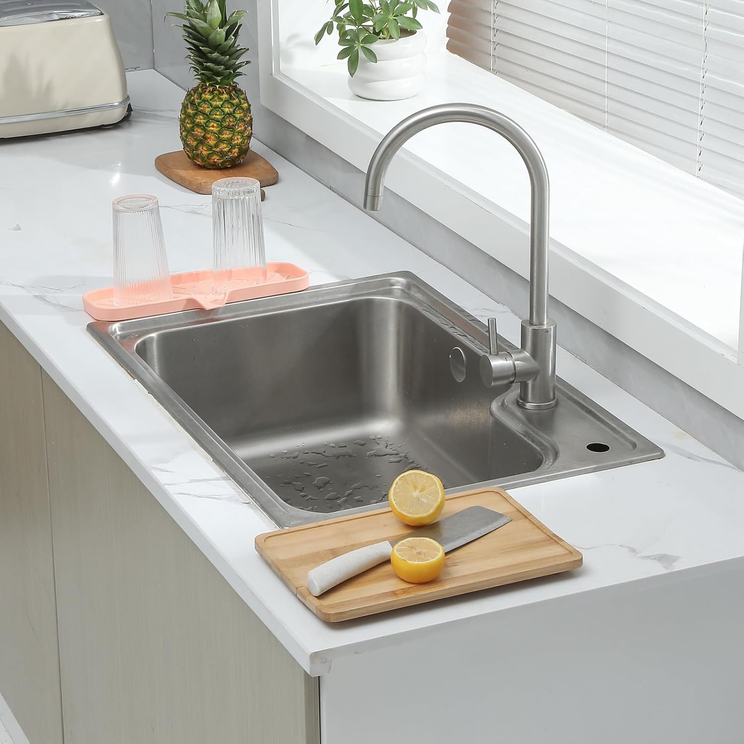 Silicone Bathroom Soap Dishes with Drain Spout-Bathroom and Kitchen Sink Organizer,Sponge Holder,Dish Soap Tray,Perfect for Dispenser,Scrubber,Bottle,Cup on Sink or Counter-Pink 12"×4"