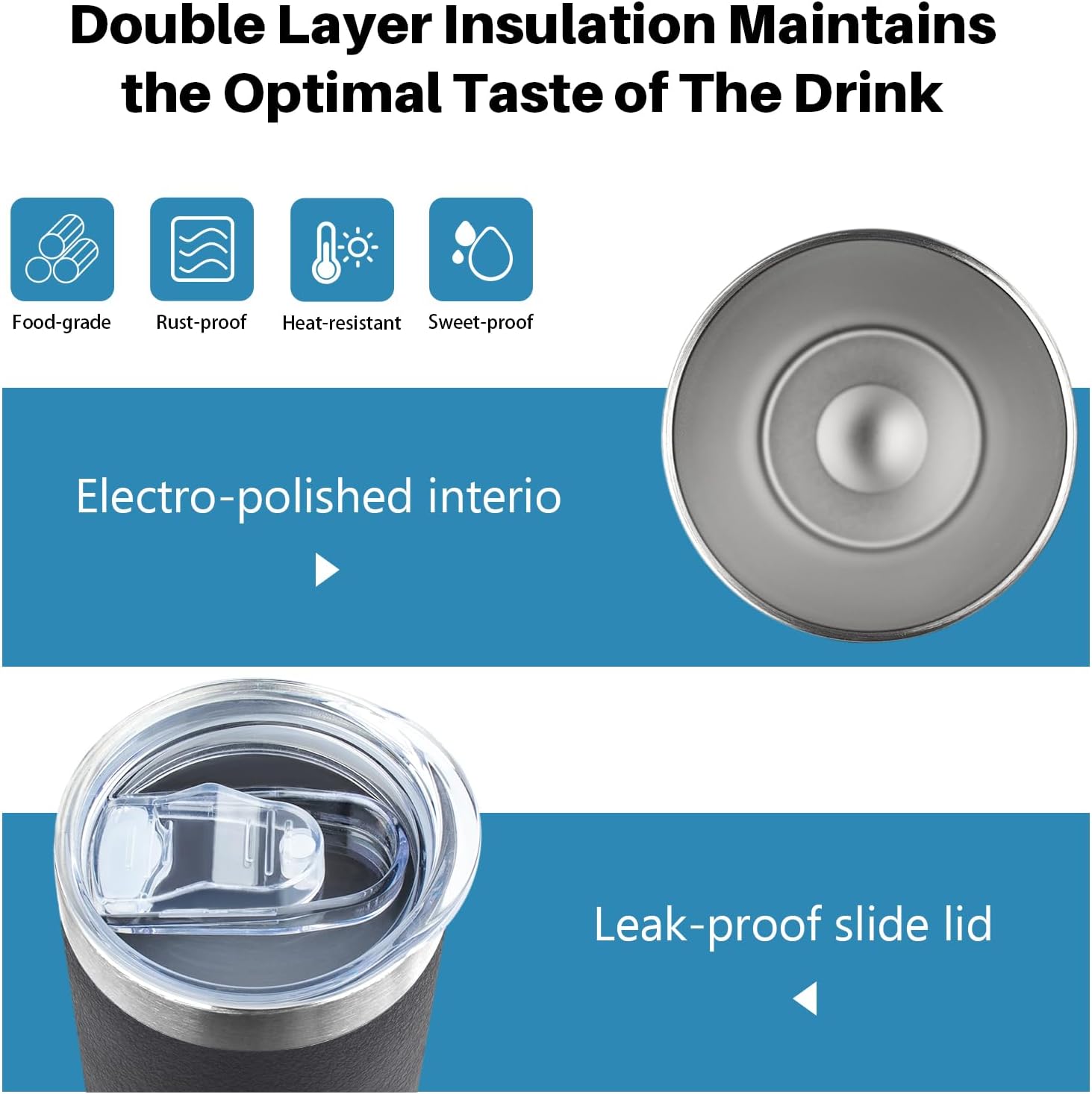 - ๐ฅใ๐๐ฃ๐-๐๐ฟ๐ฒ๐ฒ ๐ฆ๐น๐ถ๐ฑ๐ถ๐ป๐ด ๐๐ถ๐ฑ &๐ฆ๐๐ฟ๐ฎ๐ ๐๐ฟ๐ถ๐ฒ๐ป๐ฑ๐น๐ ๐๐ฒ๐๐ถ๐ด๐ปใThe lid of stainless steel skinny tumbler is BPA-free and Eco-friendly lid with gasket sealed to provide maximum splash-proof capability and the non-toxic lid will not affect the quality of the drink.Whatโs more,itsโ drink hole on the top for easier sipping.