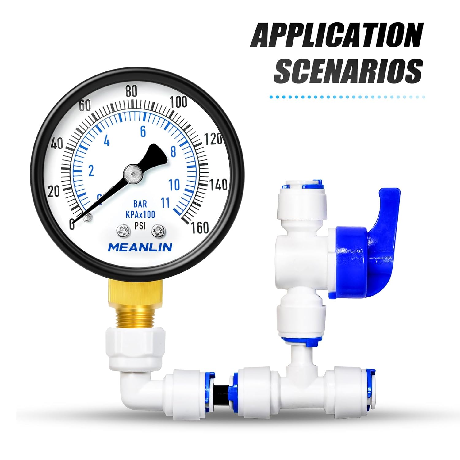 MEANLIN MEASURE 0-160Psi Well Pump Pressure Gauge 1/4" NPT 2" FACE DIAL for Air Compressor RV Regulator Water Pressure Tester Back Mount, with Teflon Tape