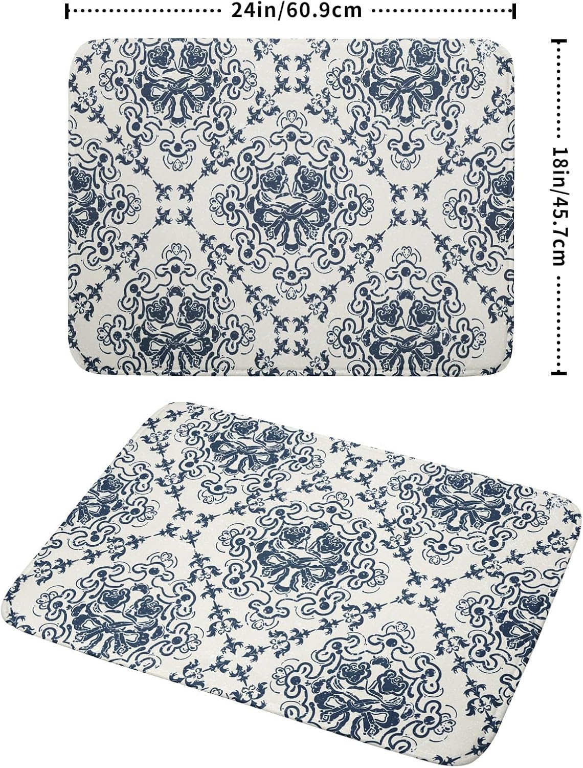 Bohemian Grey Retro Dish Drying Mat for Kitchen Counter,Boho Abstract Flower Art Drying Mat 18 x 24 Inch Microfiber Dish Drying Pad Dish Rack Pad Drainer Mat for Coffee Bar