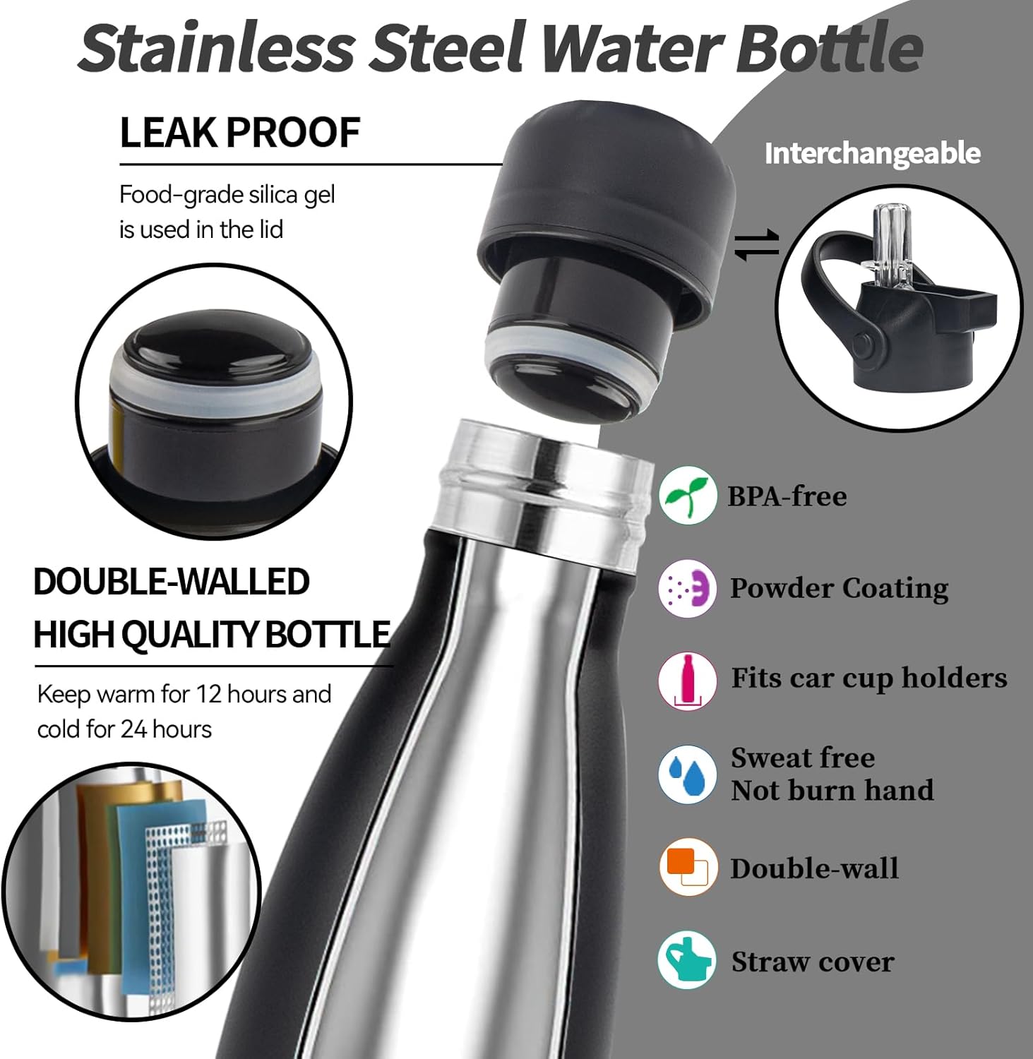 - REPLACEMENT STRAW LID AVAILABLE:Available in 2 leak-proof covers that can be switched at any time,1 straw lid, 1 easy-twist Screw lid.The straw lid is very convenient and satisfies your child when he wants to drink water through a straw.The stainless steel cover can withstand frequent drops without breaking.All caps are 100% leak-proof,so you can drink on the go without spilling,and don't worry get wet and putting it in your bag.