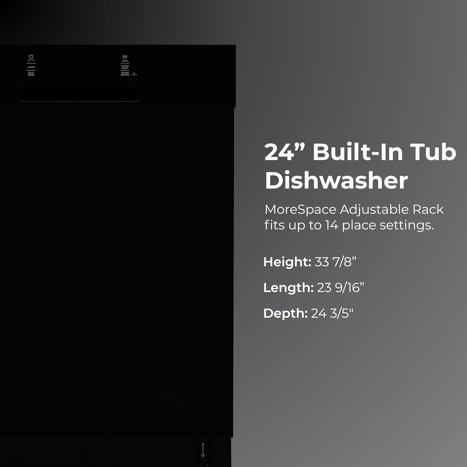 Kenmore 24" Built-in Stainless Steel Tub Dishwasher SmartWash, UltraWash, SmartDry Plus, MoreSpace Adjustable Rack and Leak Detect, Energy Star Certified, Black