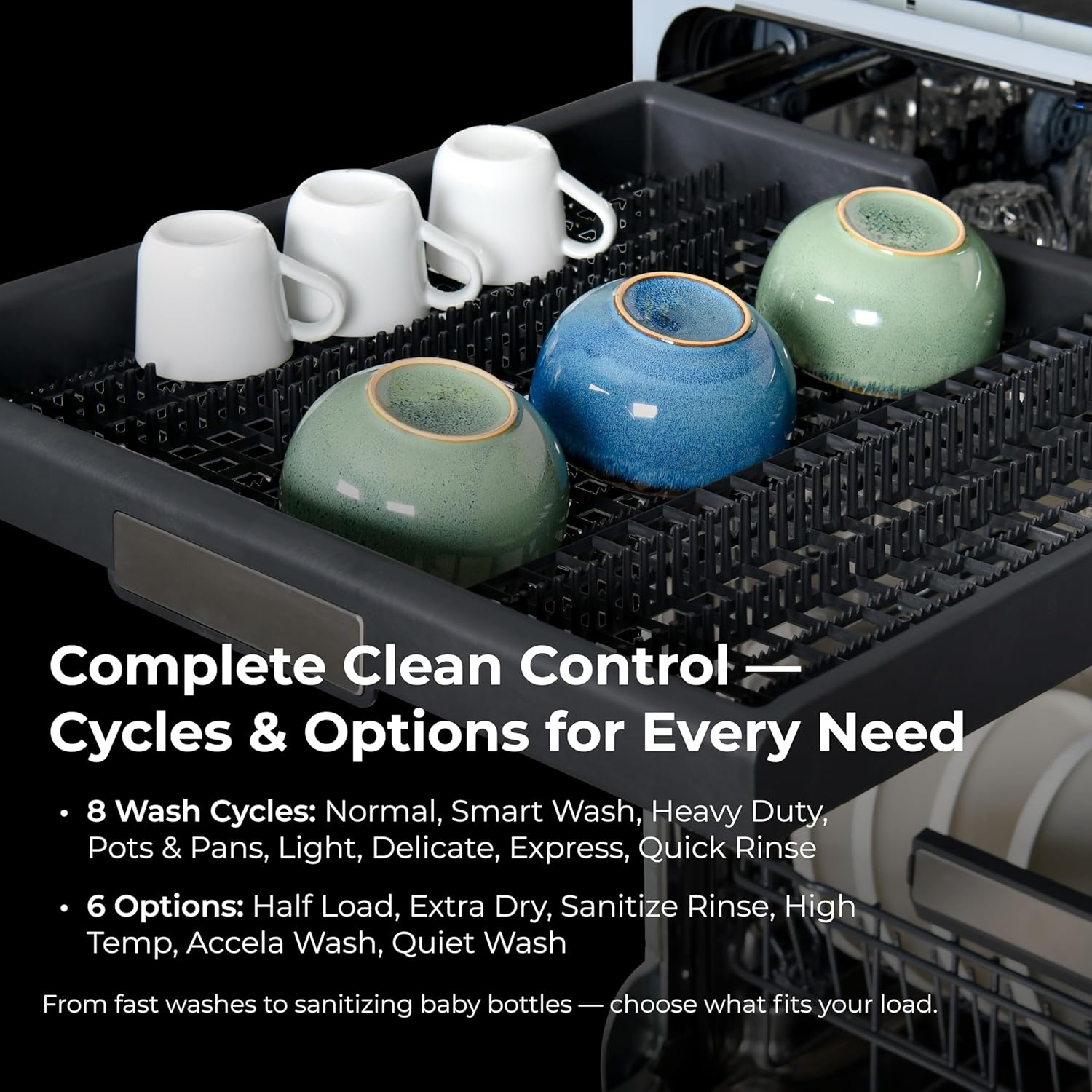 - SmartWash Adjusts to the Mess: Sensor technology detects soil levels and automatically adjusts the water temperature, pressure, and cycle time. A dishwasher that gives the best clean for every load