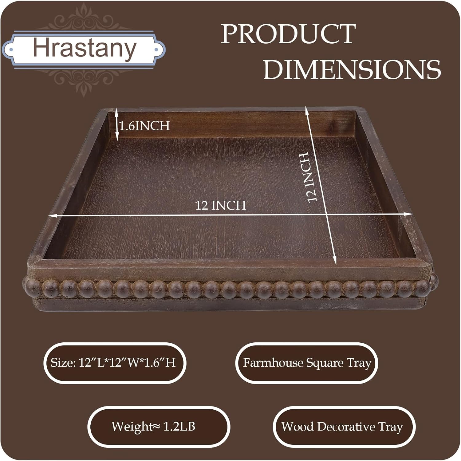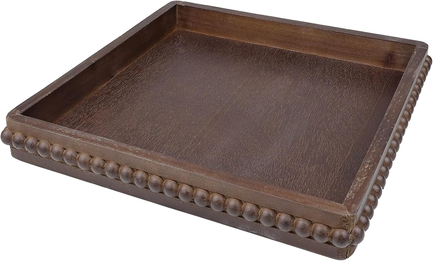 Square Wood Decorative Tray, Rustic Coffee Table Serving Tray for Ottoman, Farmhouse Kitchen Counter Organizer, Bedroom, Home Decor(Retro Brown)