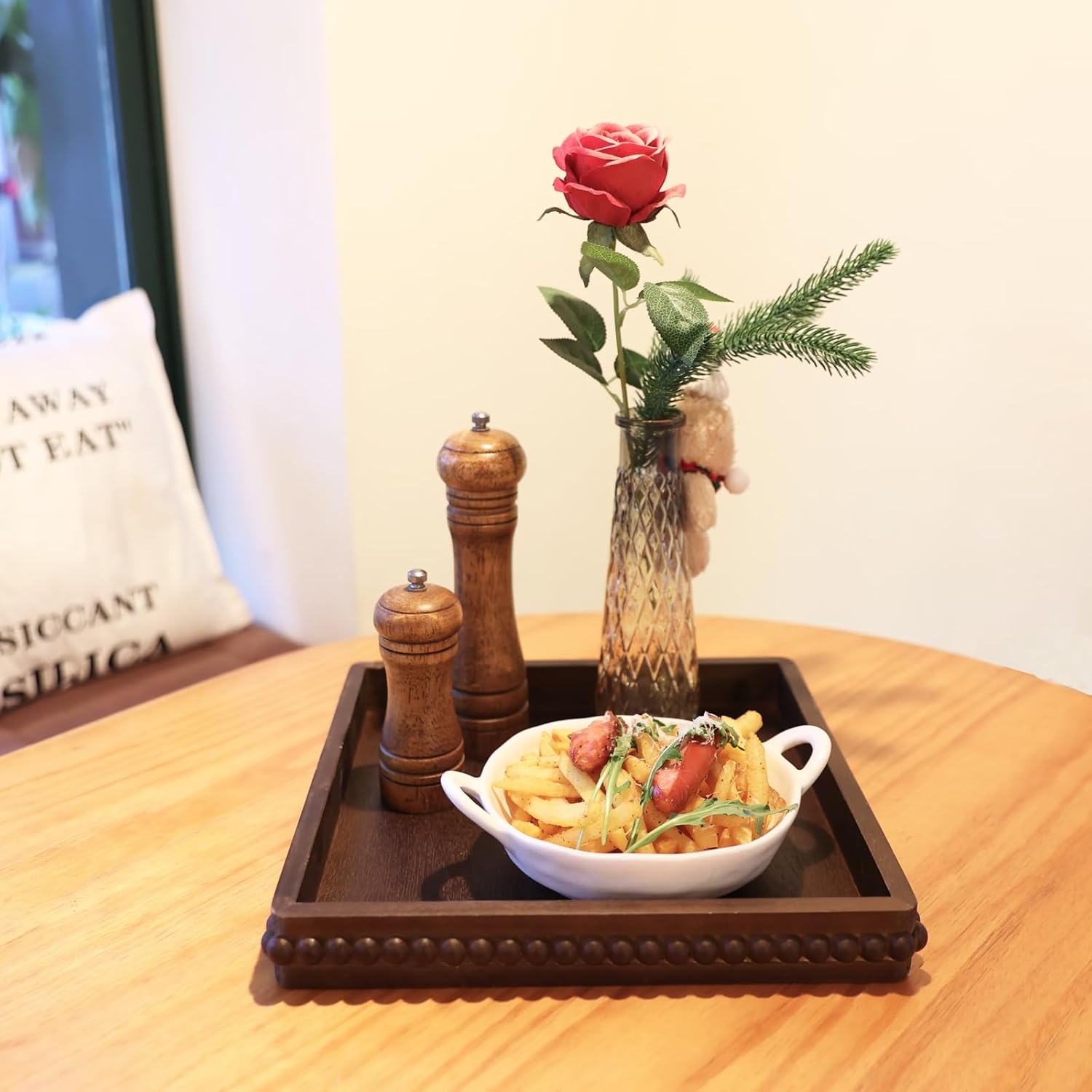 - Sturdy & Water-Resistant: Crafted with durability in mind, the tray features a solid base. While the wood may leave water marks if it encounters water, simply wipe it with a damp or dry cloth to maintain its pristine look.