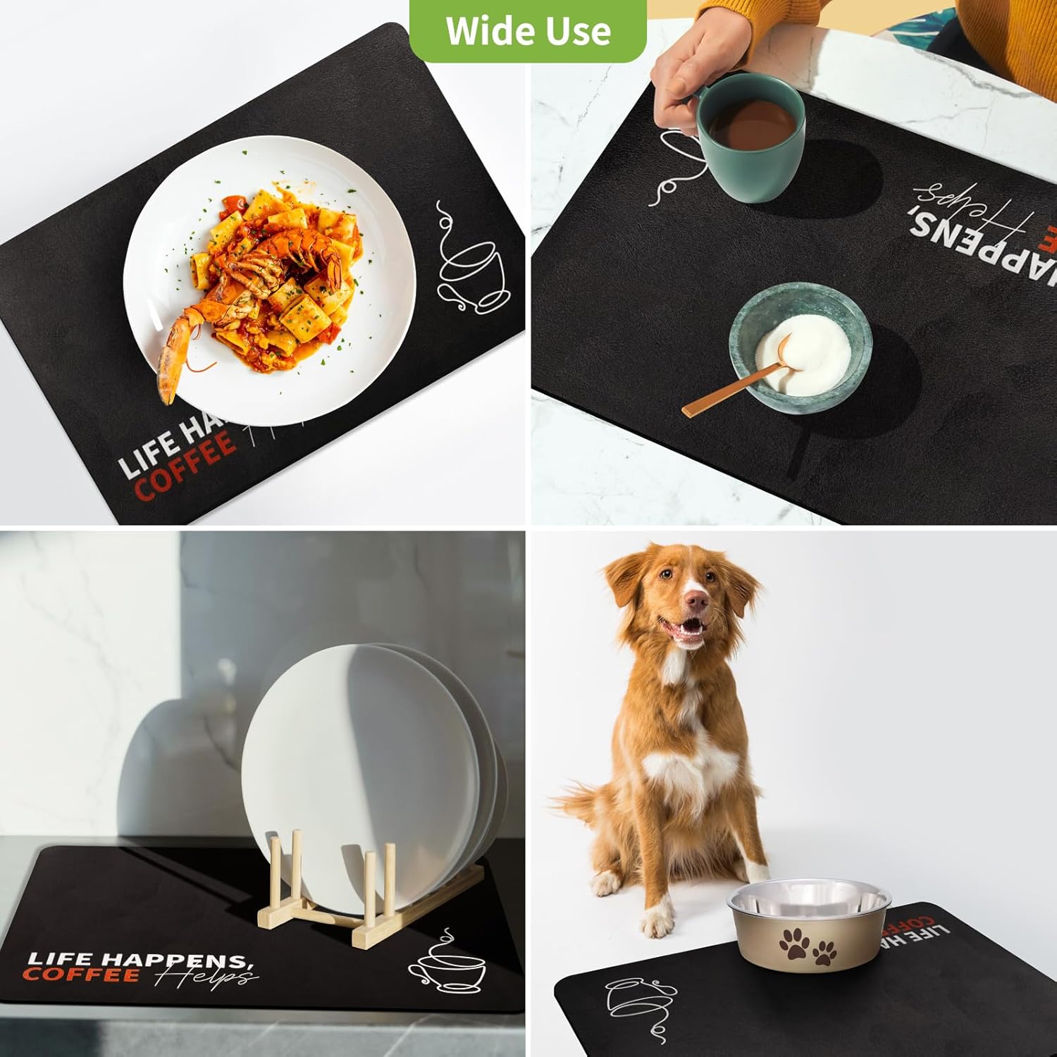 - 【Effortless Maintenance】 Designed for busy households, this mat is not only easy to wipe clean but also rinseable, machine washable, and even dishwasher safe. Whether you use it as a drying mat for dishes or a coffee bar mat, it’s built for hassle-free upkeep and long-lasting durability.