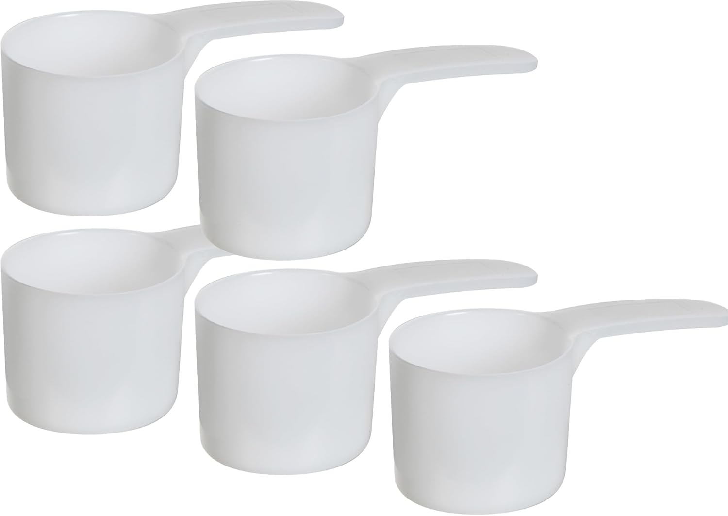 70 mL Plastic Measuring Packaging Scoop (=70 cc/ = 4.73 Tablespoon/ = 2.37 fl oz/ = 0.3 Cup), Meidum Handle - to Measure and Dispense Spices, Granules, Powders, for Seeds Packing (5)