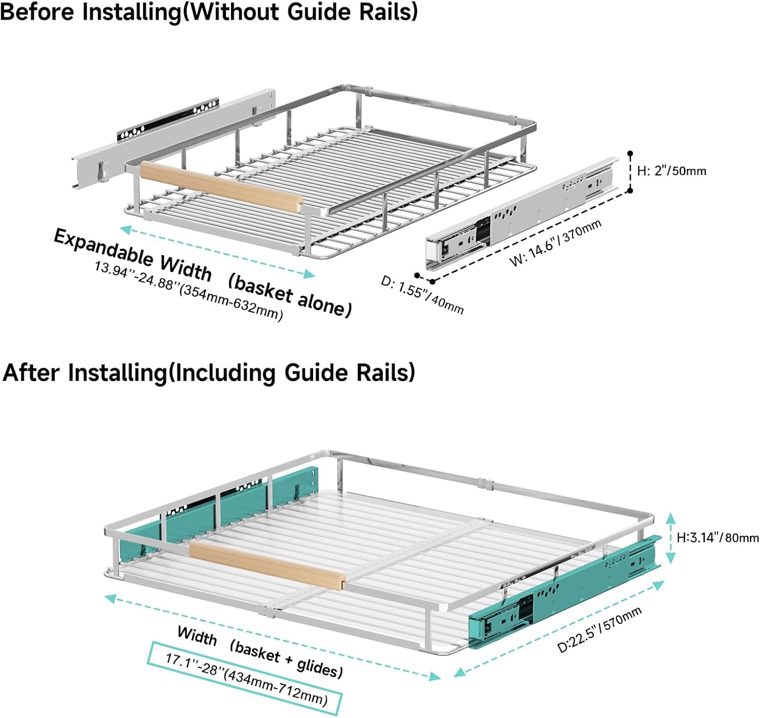 - Sturdy and Reliable Materials: Our pull out drawers for cabinets made of high quality chromed stainless steel, prevent scratches, not easy to rust and deform, and features excellent stability. Smooth surface and chrome color can be matched with various style of cabinets, suitable for variety of family styles.
