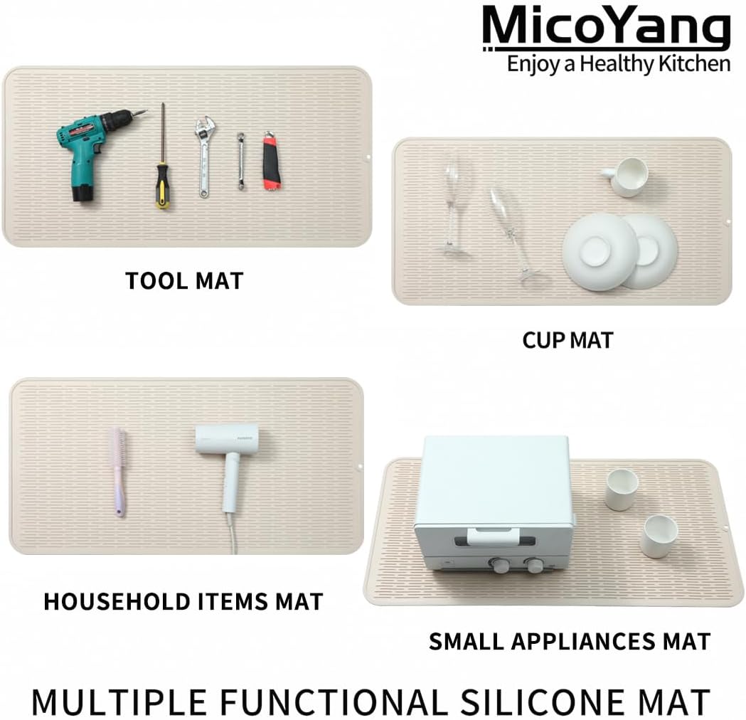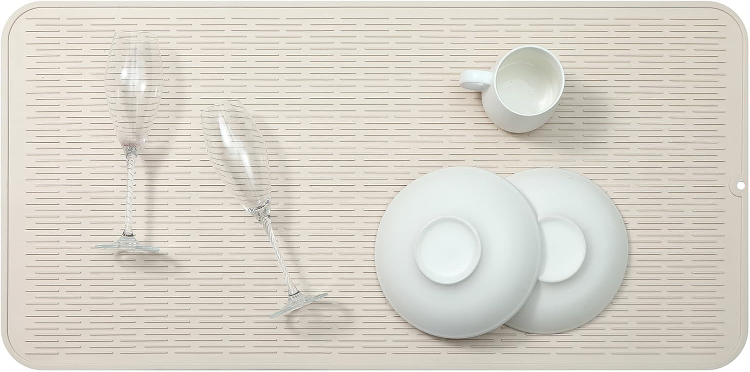 Silicone Dish Drying Mat for Multiple Usage,Easy clean,Eco-friendly,Heat-resistant Silicone Mat for Kitchen Counter or Sink,Refrigerator or Drawer Liner Tapioca 5XL 36inches x 18inches