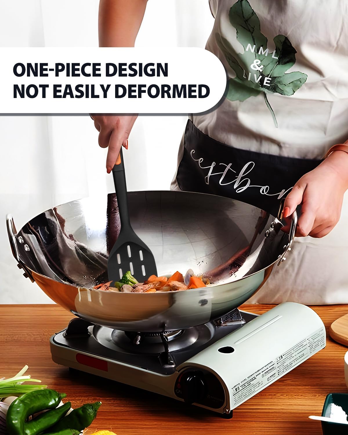 - Heat Resistant: Our silicone spatula turner and spoon set is made of food grade silicone . BPA free and will not rust. Even at 600℉, you don't have to worry about melting or deformation.