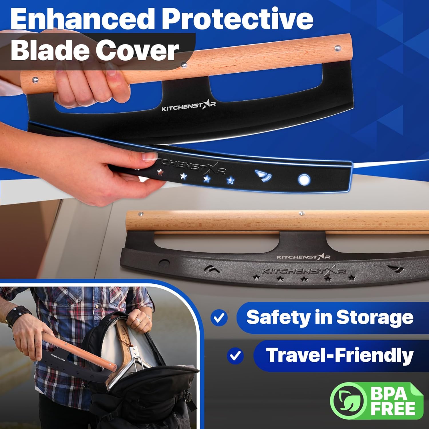 - Safety First: Your safety is paramount. That's why our pizza knife comes with a protective blade cover. Safely store your cutter when not in use, knowing that the sharp blade is securely covered.
