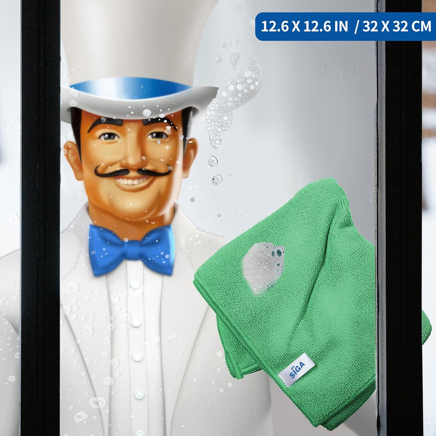 MR.SIGA Microfiber Cleaning Cloths, All-Purpose Microfiber Towels, Streak Free Cleaning Rags, Pack of 12, Green, Size 32 x 32 cm(12.6 x 12.6 inch)