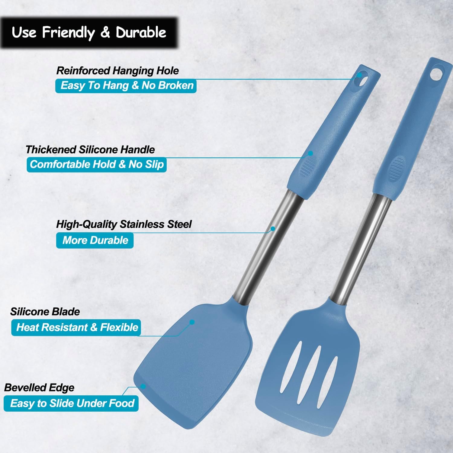 - Lasting Long: This silicone spatula set turners are made of high quality stainless steel, premium silicone with thoughtful design, to avoid blade and handle melting, and the strengthened hook is noway to break as other generics