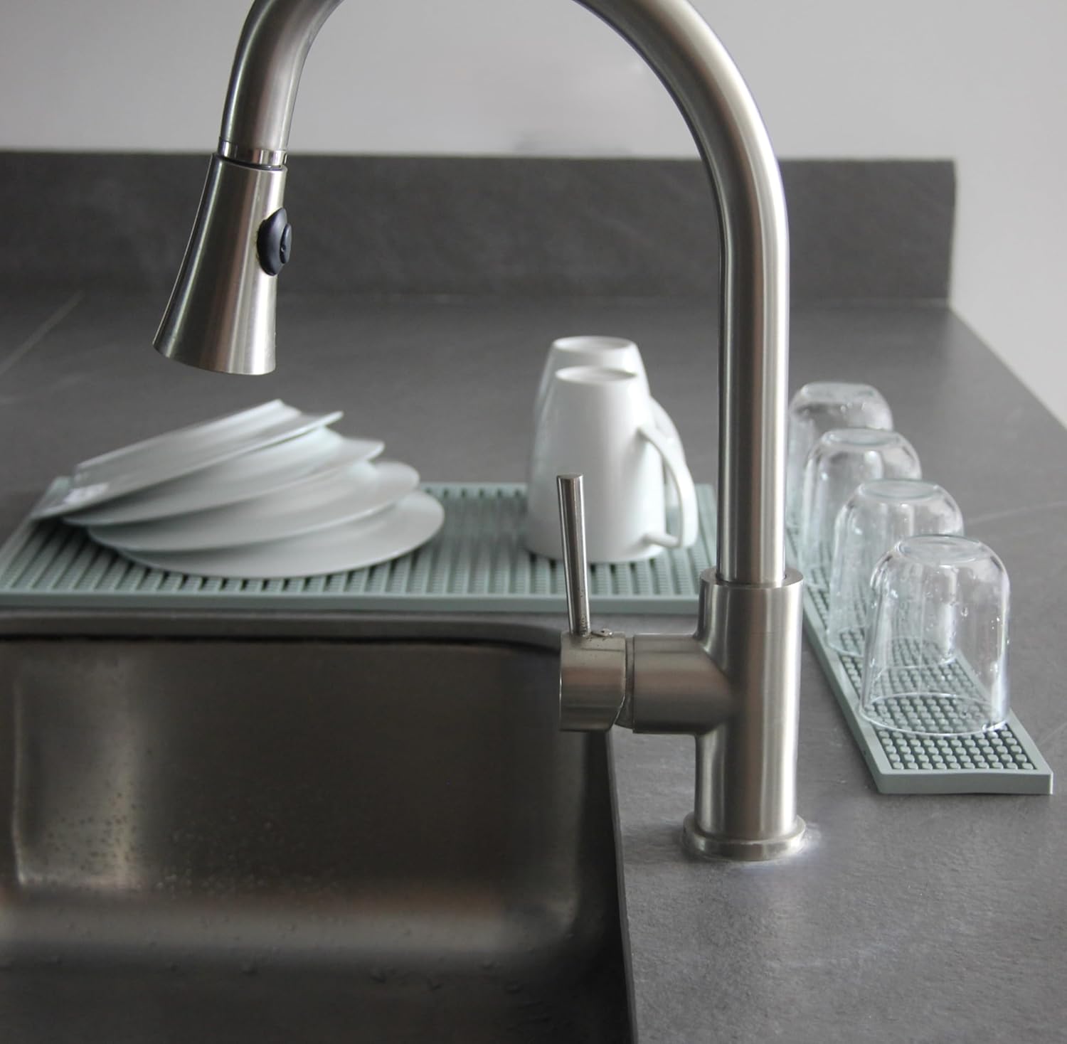 - VERSATILE USE: Ideal for bars and restaurants, our Rail Bar Mats are a solution to maintain the hygiene of your cocktail shakers and other bar tools. Designed to serve cocktails and drinks, helps reduce noise from glassware and bottles coming into contact with the bar surface. It also can be used as a glass drying mat.