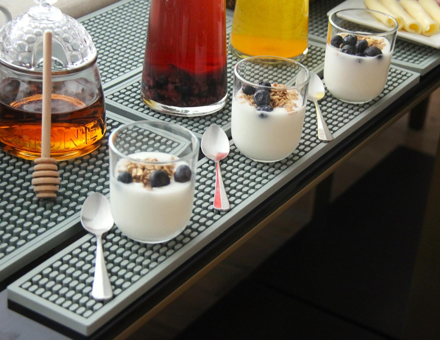 - SUPERIOR TABLETOP PROTECTION: Shield your furniture from spills, stains and water marks with our 0.4" Thick Rubber Bar Mat. Wide prongs ensures stability, preventing sliding on any countertop.