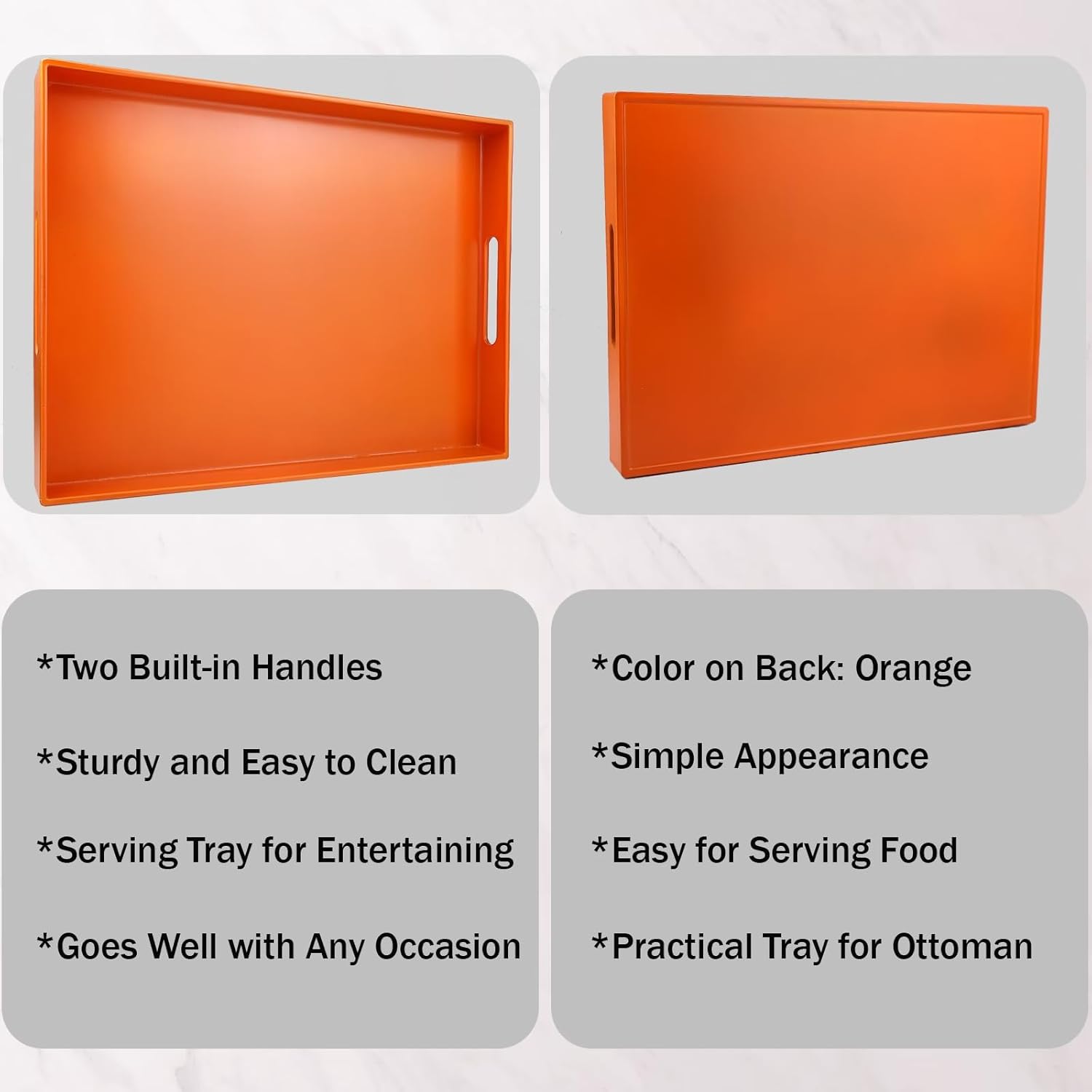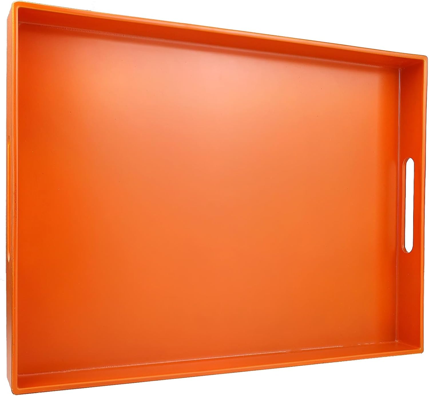 Ornage Serving Tray for Coffee Table, Rectangular Plastic Decorative Tray with Handles for Entertaining, Outdoor Patio, Living Room, Ottoman, Bathroom Counter, 11.8”*15.7”*1.6”