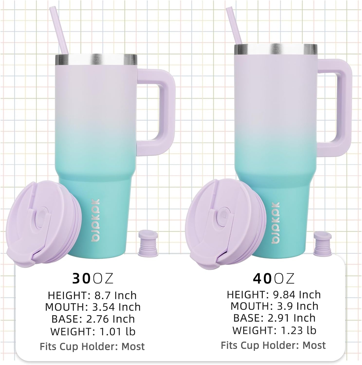 BJPKPK Tumbler With Handle 40 oz Stainless Steel Insulated Tumbler With Lid And Straw For Water Or Ice Coffee,Lavender Green