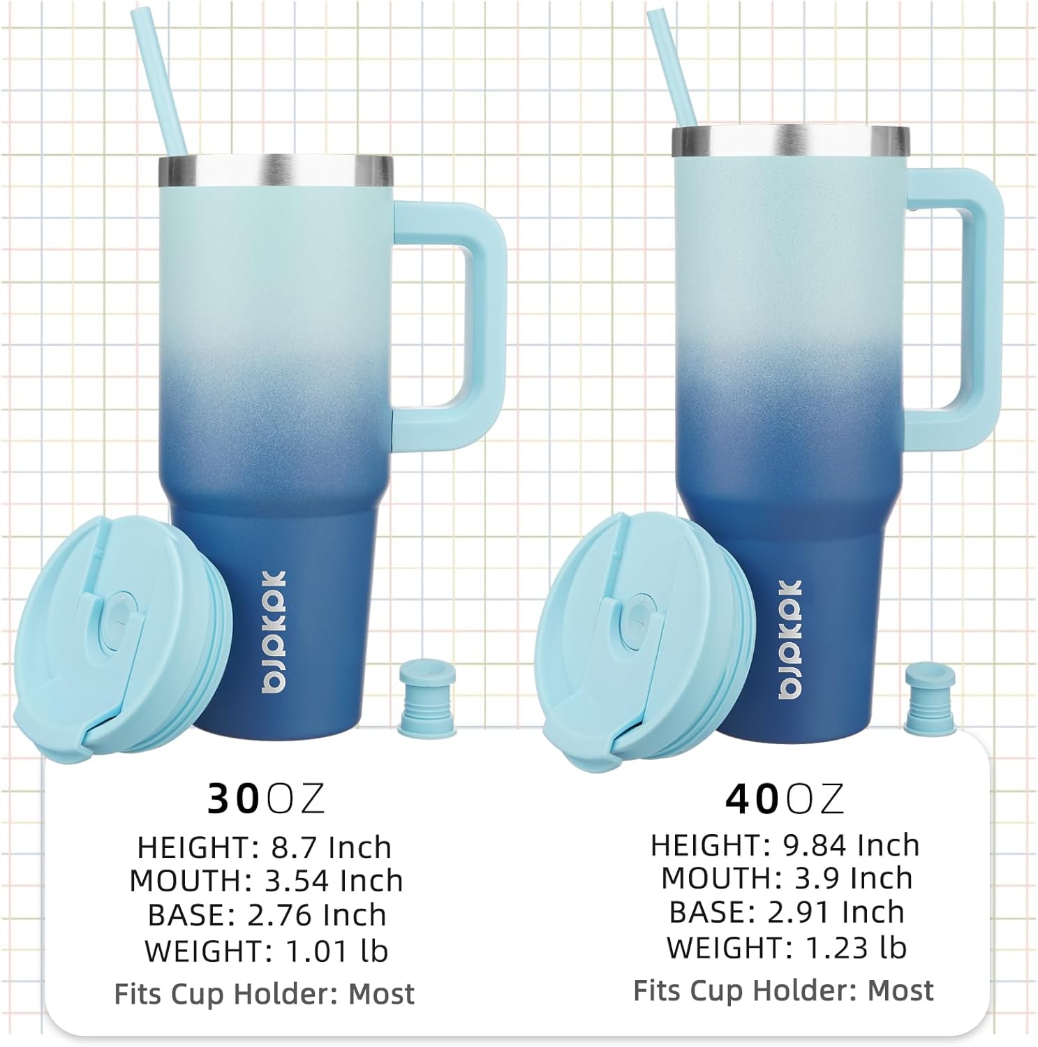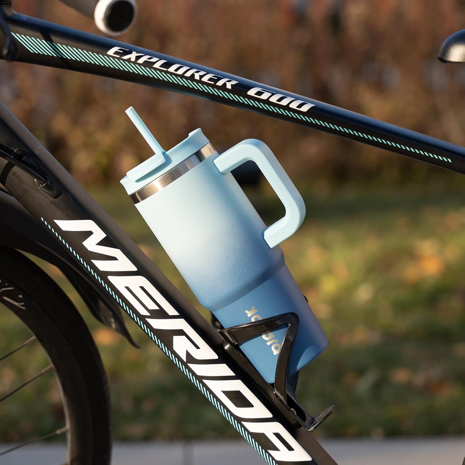 - Cupholder Friendly Travel Mugs With Handle: The Insulated Cups Has a Narrow Bottom And A Wide Mouth Fits Most Cup Holder In Car, With A Comfortable Ergonomic Silicone Handle And Two Reusable Straw To Use More Portable, You Can Stay Sipping From Your Essential Hydration Companion, Even On Your Busiest Days
