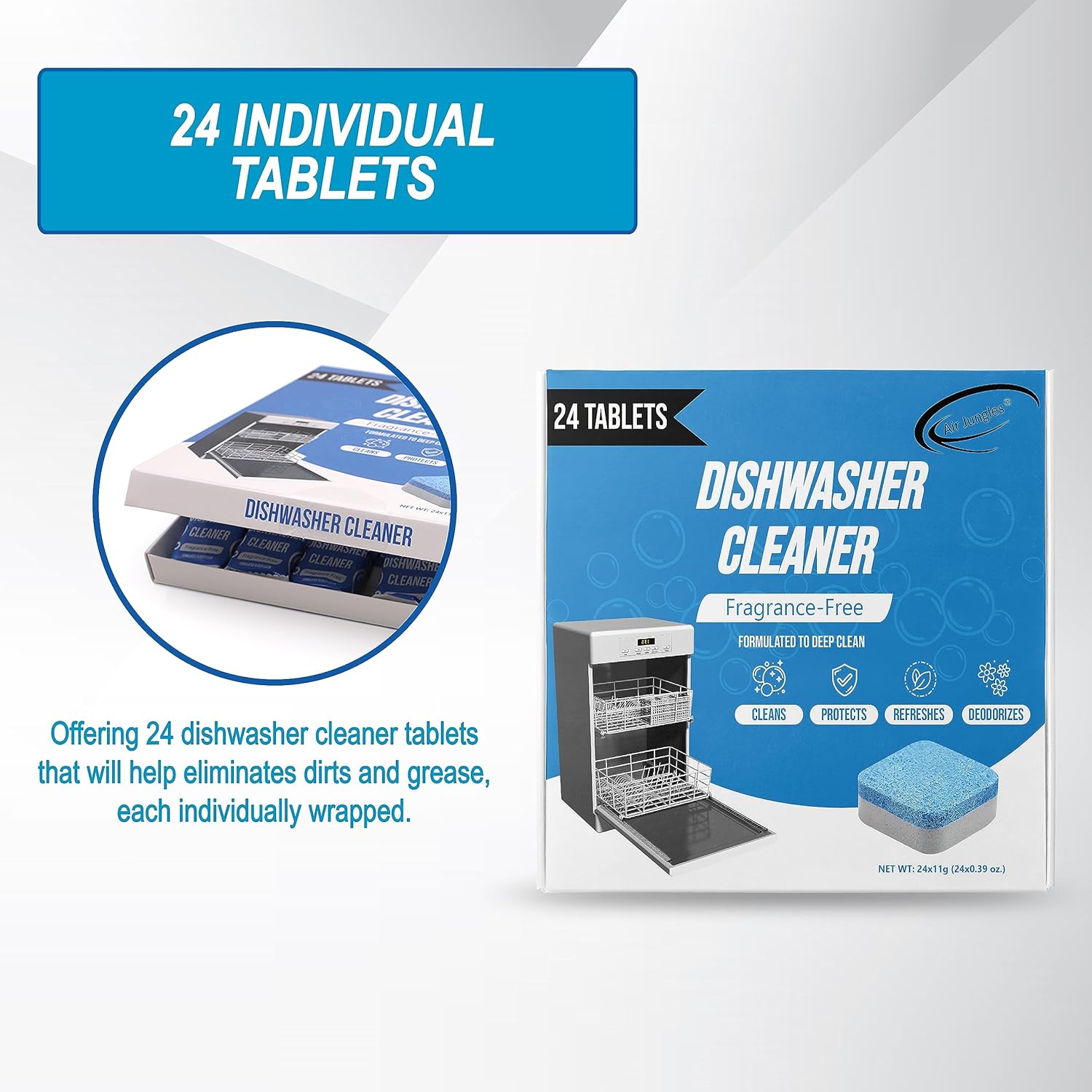Air Jungles Dishwasher Cleaner Tablets 24 Count, Fragrance Free, Deep Cleaning Descaler Pods, Clean Dishwasher Machine, Remove Limescale, Hard Water, Calcium, Odor, 12 Month Supply