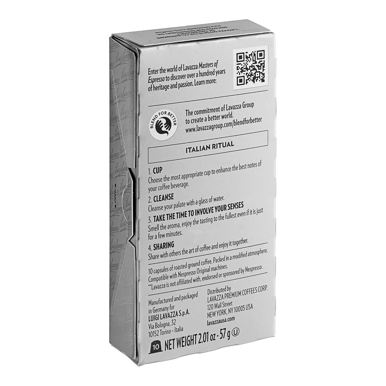 Lavazza Espresso Ristretto Dark Roast Arabica & Robusta Aluminum Capsules Compatible with Nespresso Original Machine, 10 Count, Intense and full bodied, dark crema, Intensity 12 of 13