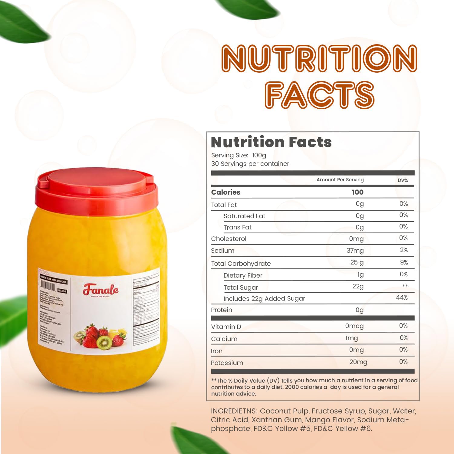 - 𝐒𝐰𝐞𝐞𝐭 𝐚𝐧𝐝 𝐄𝐱𝐨𝐭𝐢𝐜 𝐅𝐥𝐚𝐯𝐨𝐫: Each Fanale coconut jelly boba tea variety is infused with sweet and exotic flavors that complement a range of recipes. This nata de coco jelly topping includes strawberry, lychee, blueberry, mango, sakura, green apple, coconut, Konjac, and coffee flavors, adding a distinct and delightful twist to your creations.