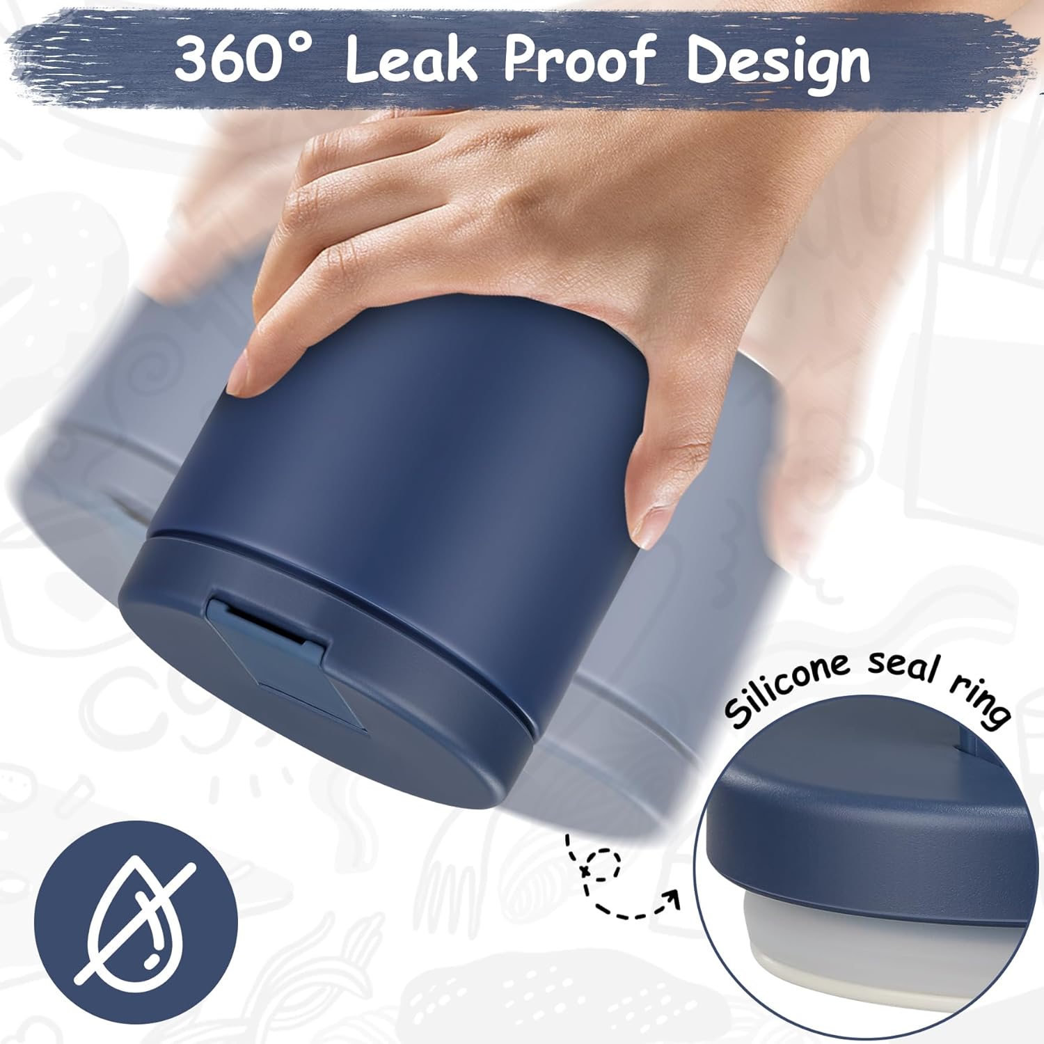 - 100% Leak Proof:Our food thermo comes with a thick silicone gasket. It is full sealed. So you can toss it in your bag or insulation bag without worrying about spills. Wide mouth design are also very easy to clean.