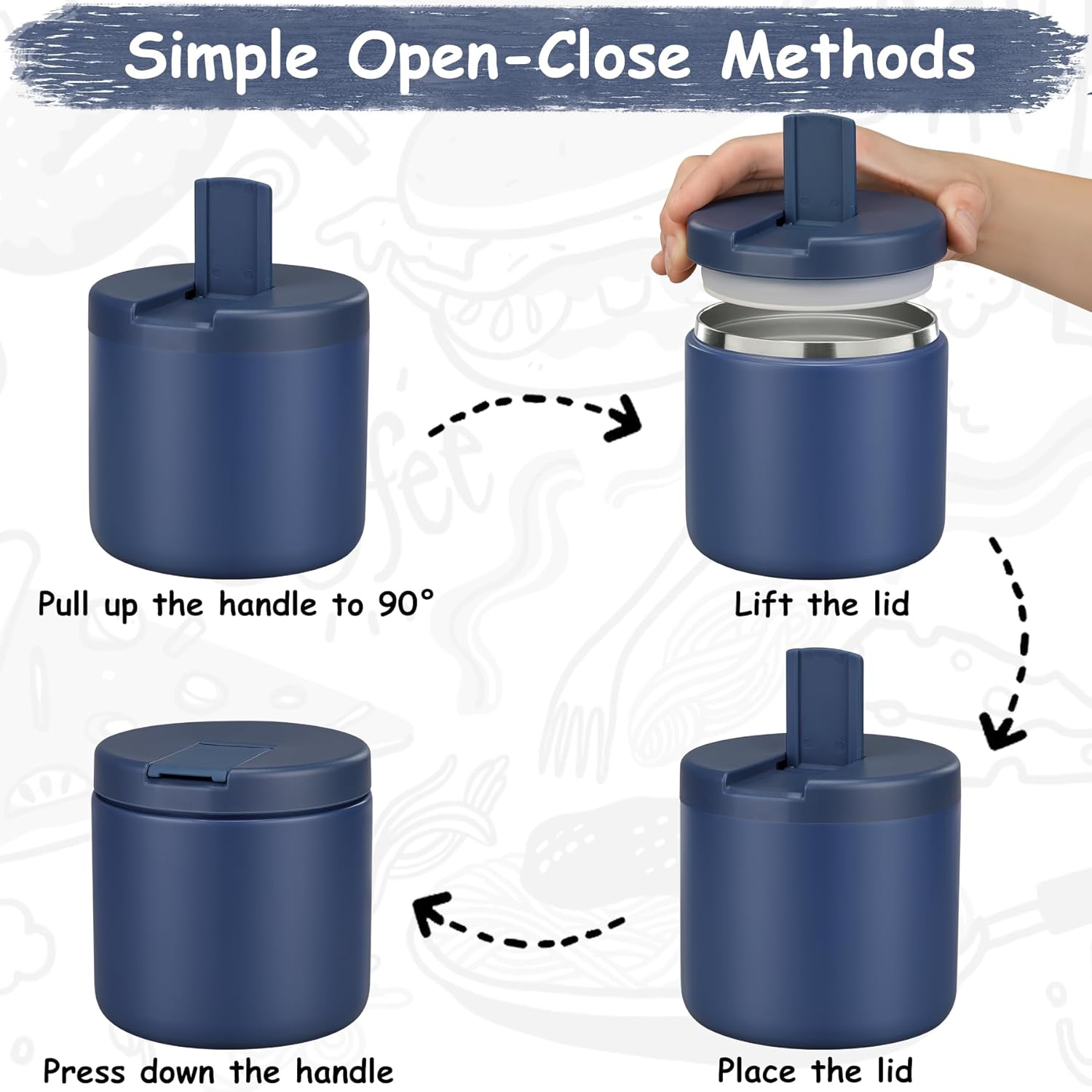 - Use Tips and Notes: In order to keep food hot or cold for a longer time, we recommend preheating/precooling with hot water/ice water for 5~10 minutes before putting food or soup into the food jar, and then put the food in. Note that when you disassemble the cover for cleaning and then reinstall it, be sure to lift the top of the cover before installing it. Otherwise, it will not be firm!!!