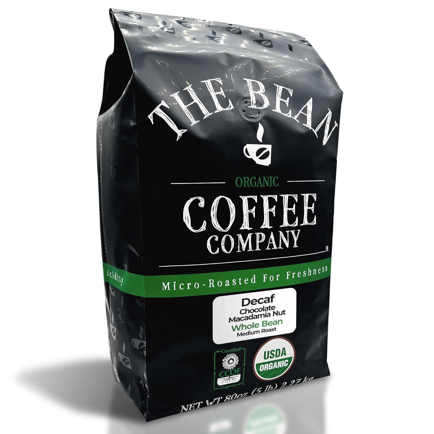 The Bean Organic Coffee Company Water Processed DECAF Chocolate Macadamia Nut, Medium Roast, Whole Bean Coffee, 5-Pound Bag