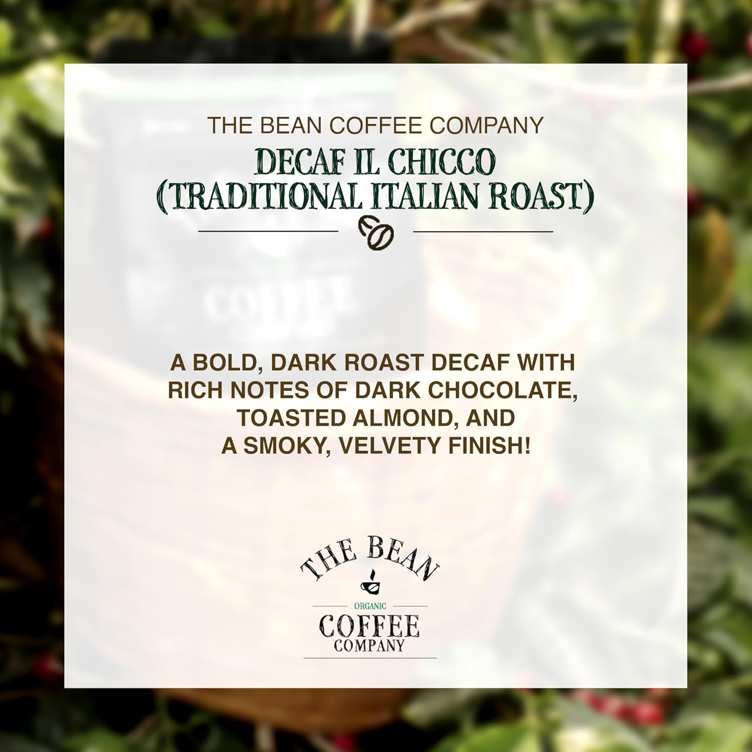 The Bean Organic Coffee Company Water Processed DECAF IL Chicco (Traditional Italian Roast), Dark Roast, Whole Bean Coffee, 16-Ounce Bags (Pack of 2)