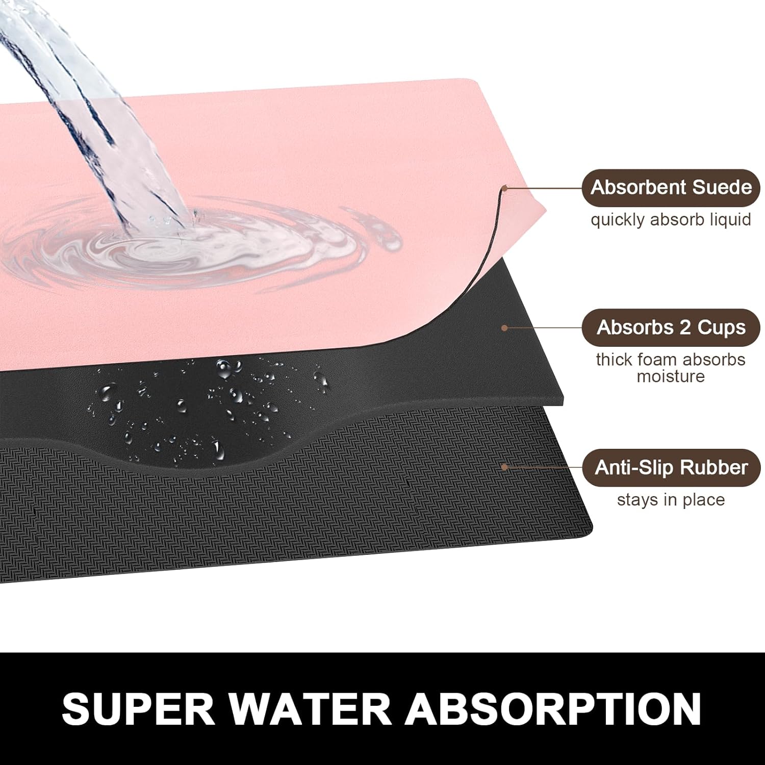 Rnivvi Dish Drying Mat for Kitchen Counter, 16 x 18" Cute Absorbent Heat Resistant Drying Pad with Non-slip Rubber, Coffee Bar Mats for Coffee Machine Dish Rack Kitchen Decor Accessories, Pink