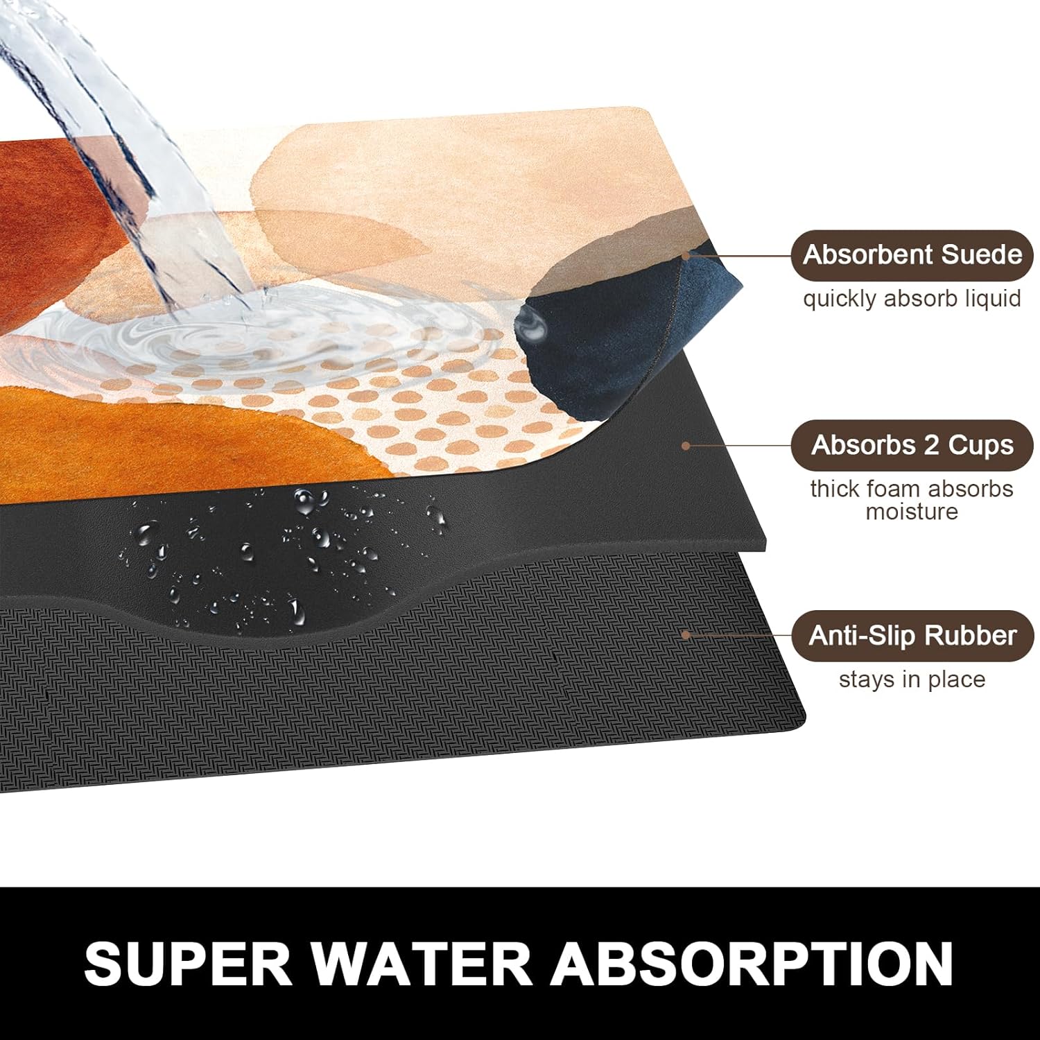 Rnivvi Dish Drying Mat for Kitchen Counter, 16 x 18" Cute Boho Theme Absorbent Heat Resistant Drying Pad with Non-slip Rubber, Coffee Bar Mats for Coffee Machine Dish Rack, Abstract Stones Art