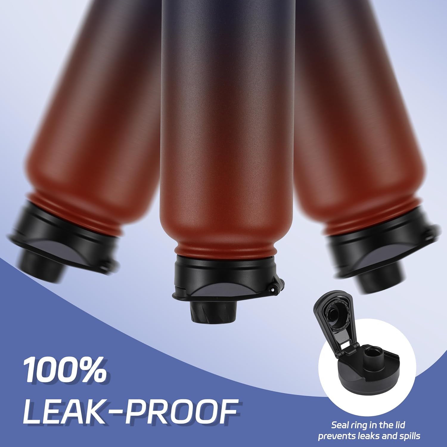 - Spout lid & straw lid: 1 flip-up straw lid, 1 easy-twist spout lid, you can drink on the go without spilling, and don't worry get wet and putting it in your bag; Easily fill your water bottle with ice and clean it through the wide mouth opening