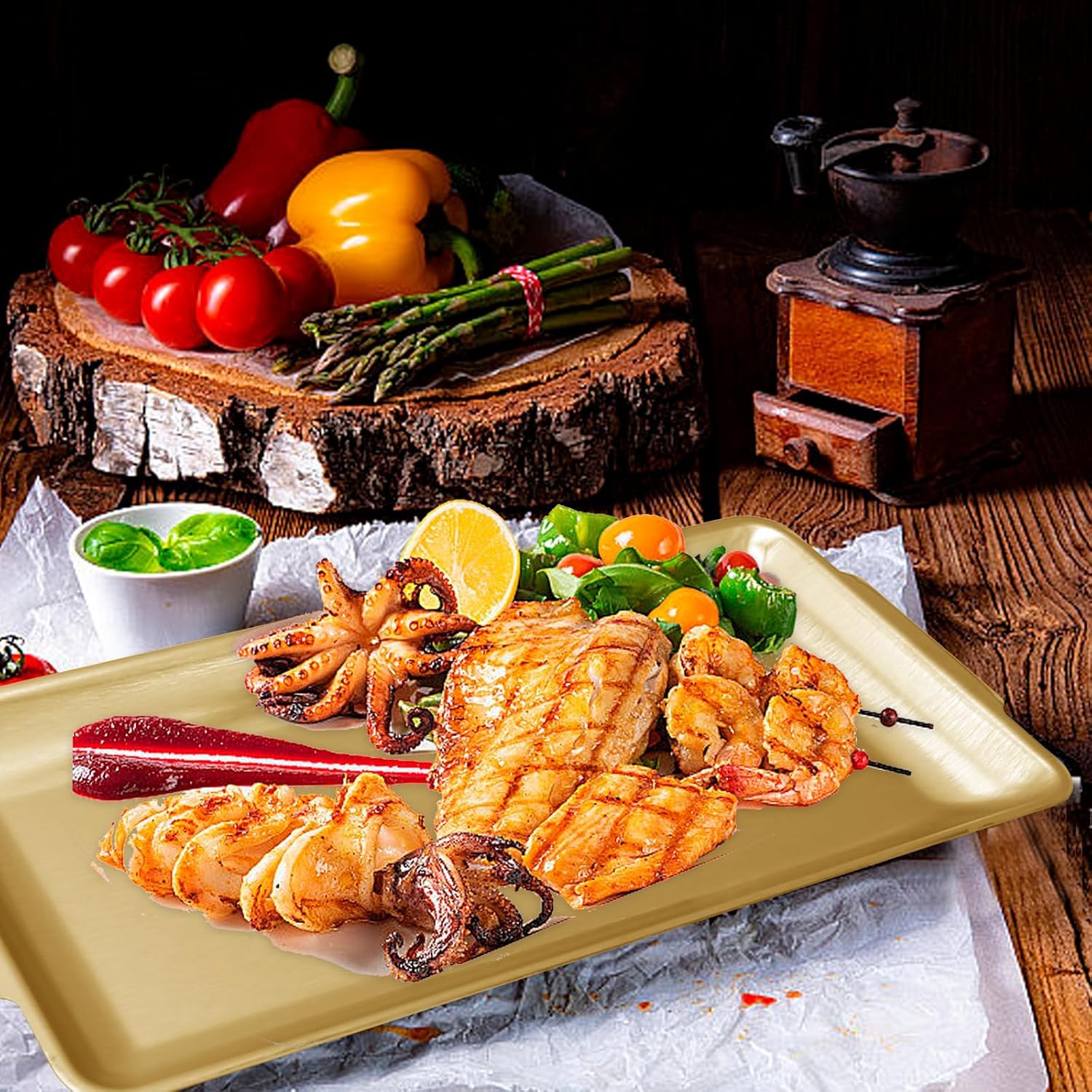 3Pcs 304 Stainless Steel Food Serving Tray, 12.6" Rectangular Serving Platters Multipurpose for Kitchen,Party Organizer Tray for Buffet Brushed Nickel (Gold)