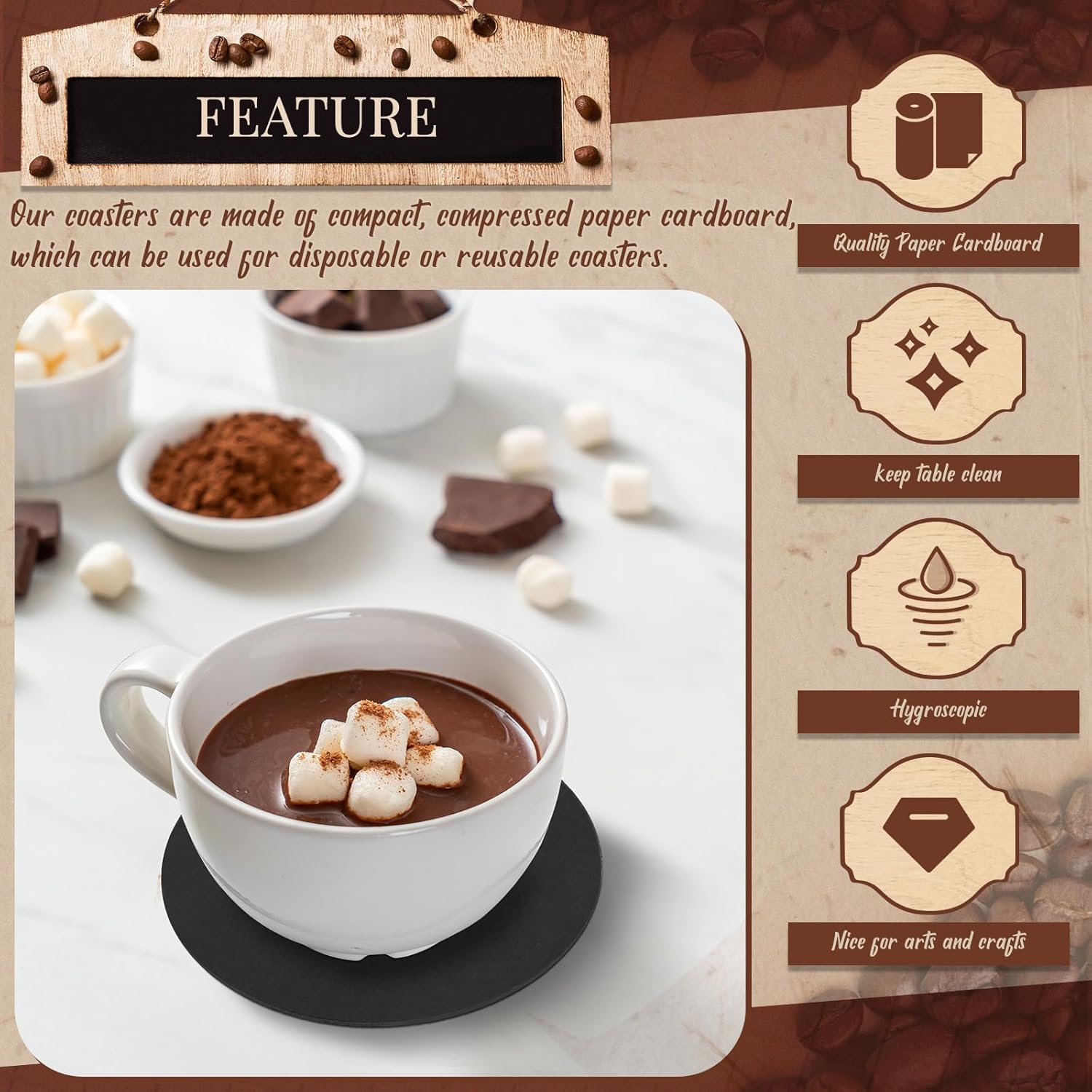 - Package Content: you will receive 400 disposable cardboard coasters, there are enough quantities to meet your needs in daily use and replacement requirements, you could use them on your own and share them with other people