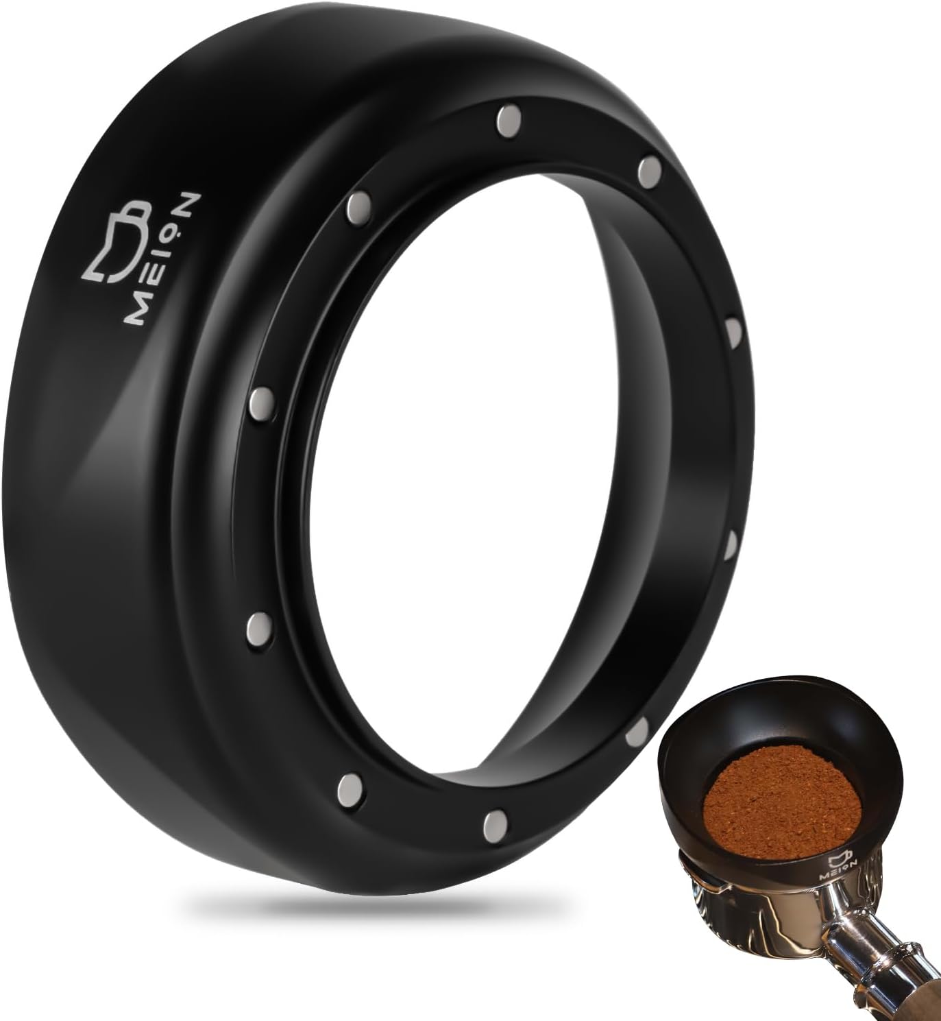 MEION 51mm Dosing Funnel, Magnetic Espresso Dosing Funnel Coffee Funnel Compatible with 51mm Portafilter, Espresso Tools Portafilter Funnel (51mm, Black)