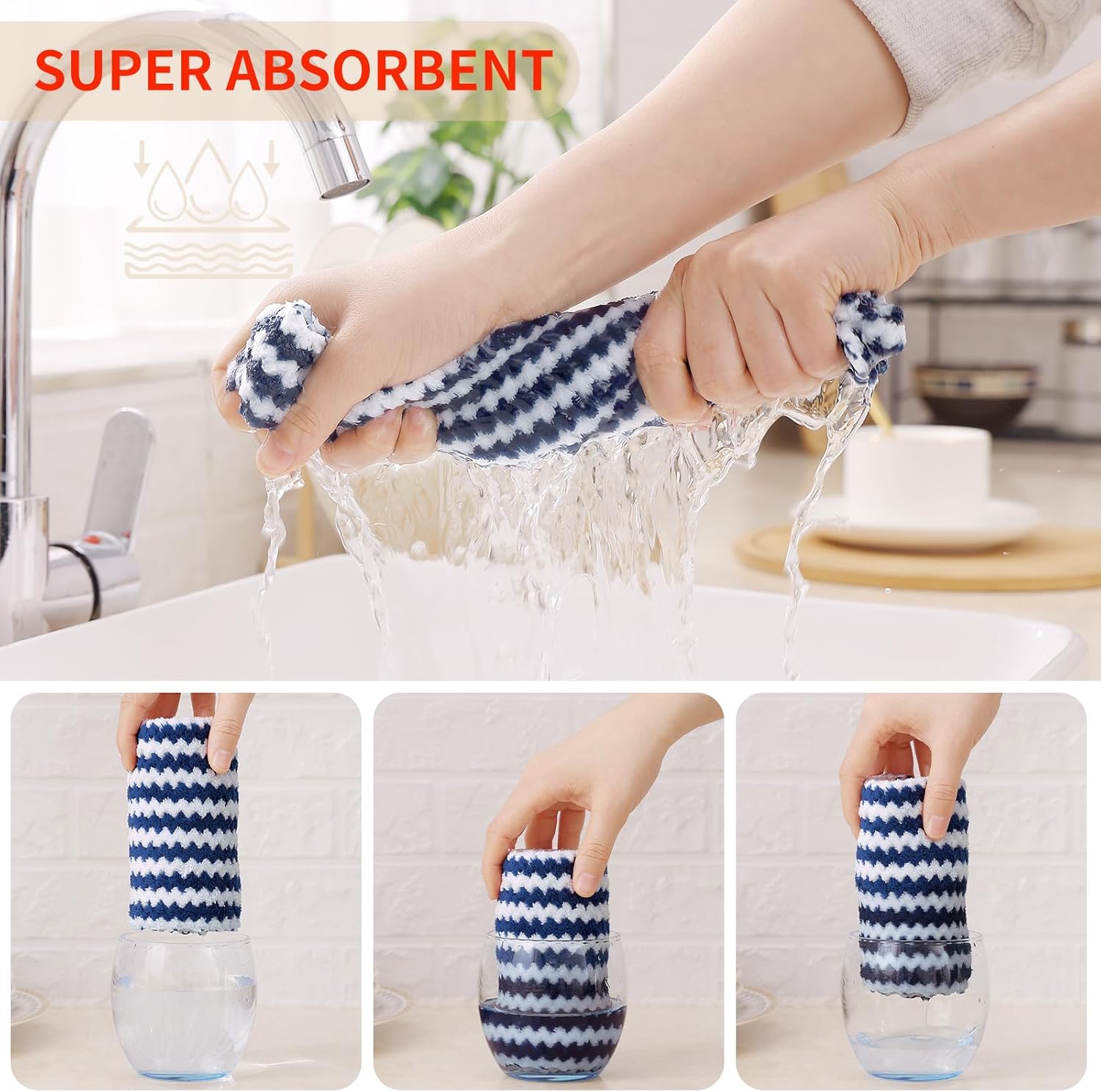 - Super Soft and Absorbent: Experience the luxurious softness of our dish towels. They are crafted with high-quality materials which feels soft and won't scratch your hands or any surfaces. Strong water absorption, easily absorb liquid and overflow, make the surface clean and dry.