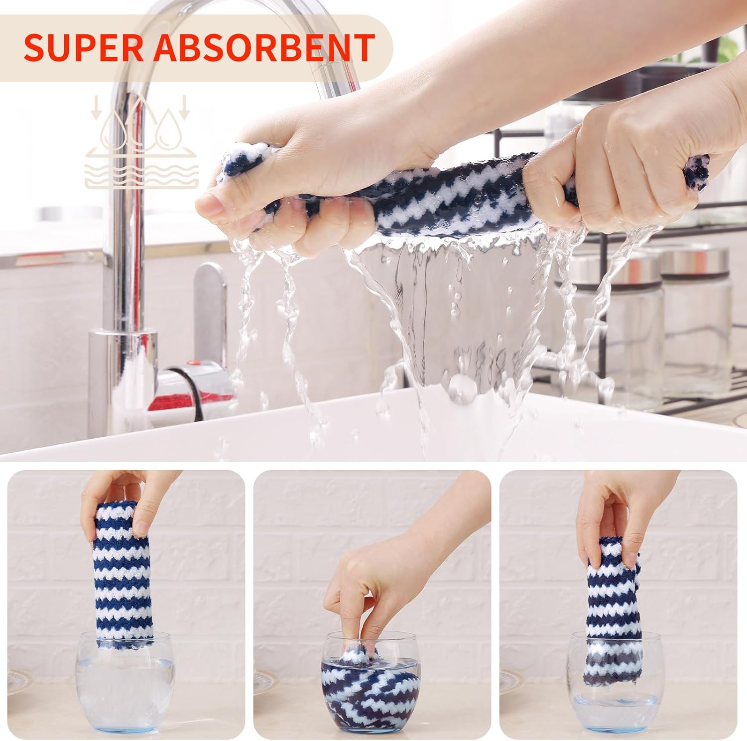 - Super Soft and Absorbent: Experience the luxurious softness of our dish towels. They are crafted with high-quality materials which feels soft and won't scratch your hands or any surfaces. Strong water absorption, easily absorb liquid and overflow, make the surface clean and dry.