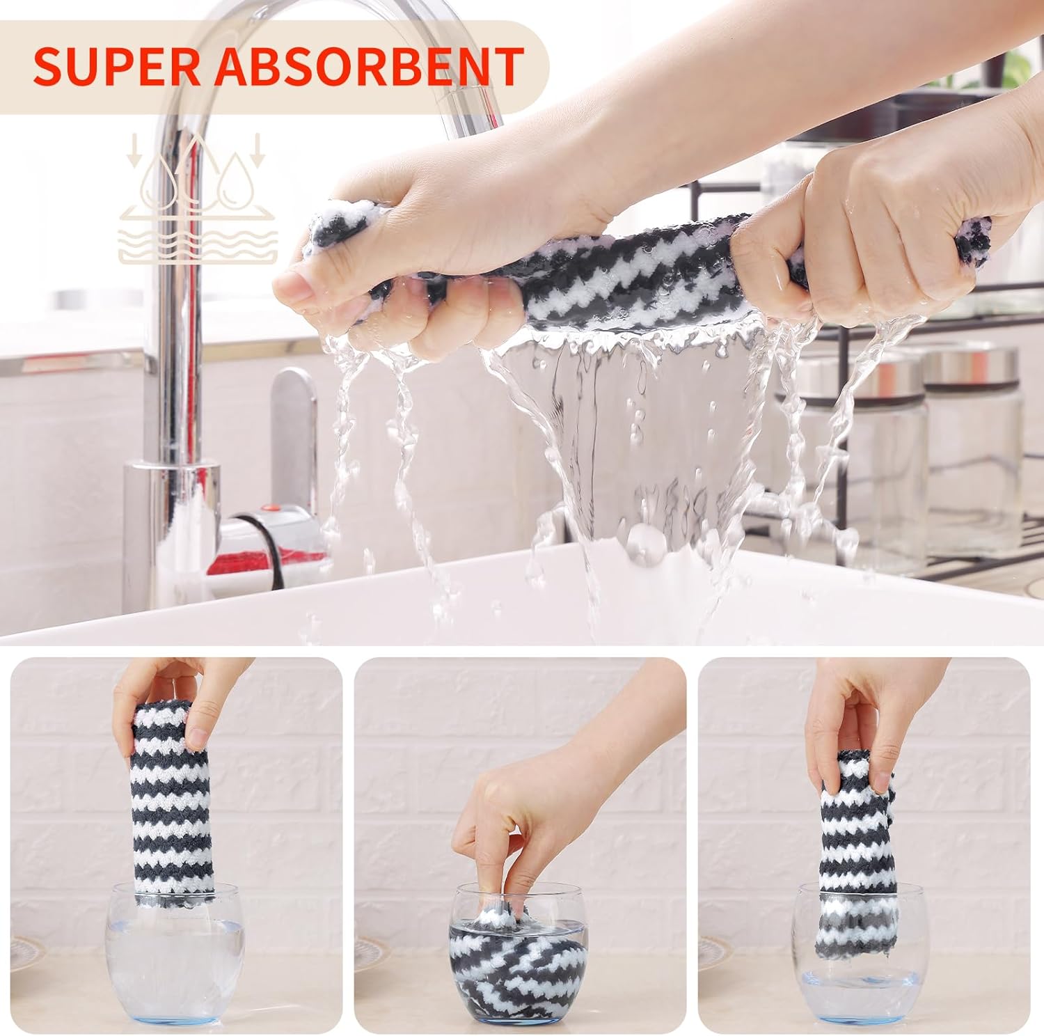 - Super Soft and Absorbent: Experience the luxurious softness of our dish towels. They are crafted with high-quality materials which feels soft and won't scratch your hands or any surfaces. Strong water absorption, easily absorb liquid and overflow, make the surface clean and dry.