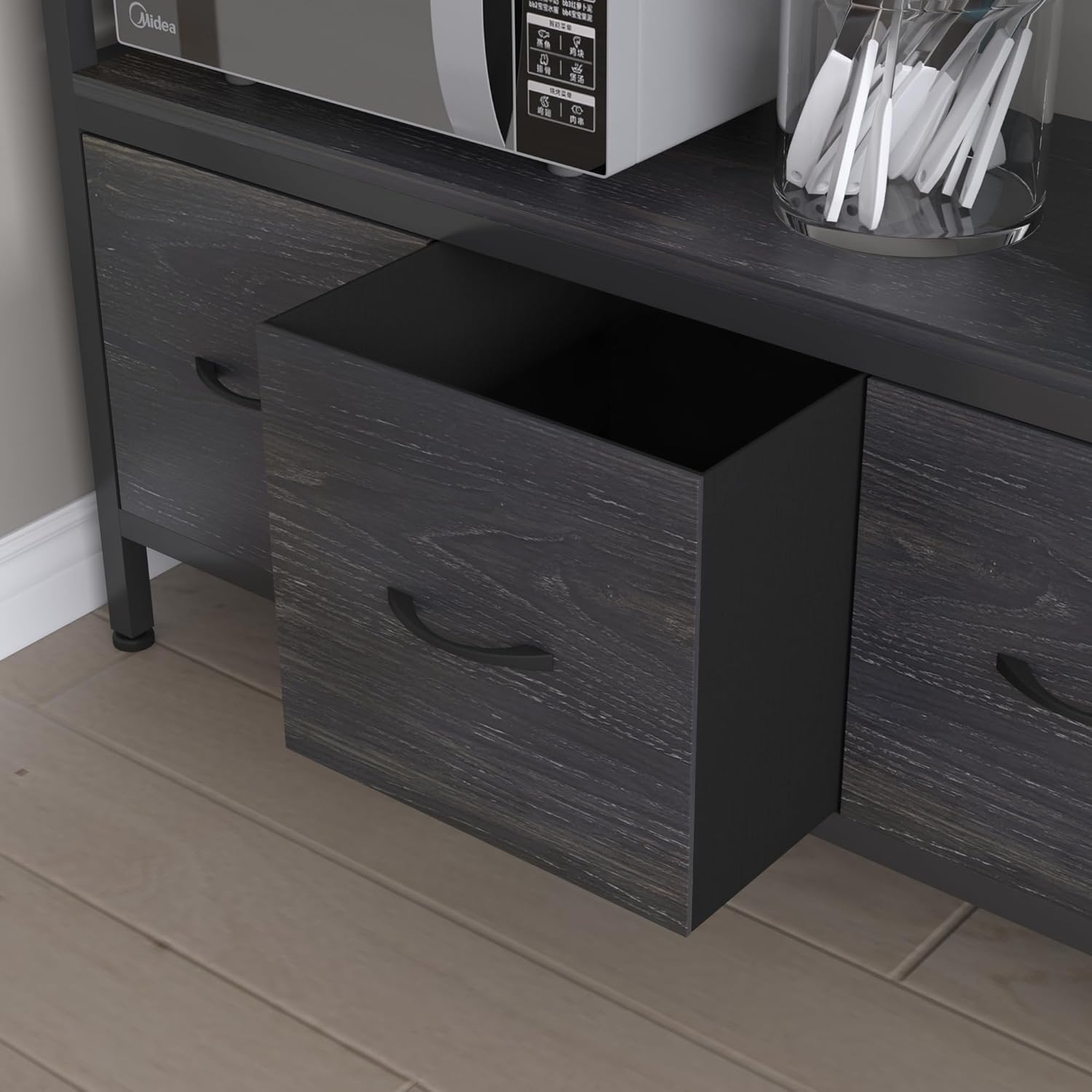 - 【Large Storage Capacity】 Size:13.39"D*39.37"W*62.2"H.the bakers rack has 3 baskets(You can also remove the basket for an extra layer of storage space) and four open shelves with different size offer ample storage space to store and organize your kitchenware, oven, bread maker, juicer while three baskets can store fruits and vegetables or some kitchen essentials.