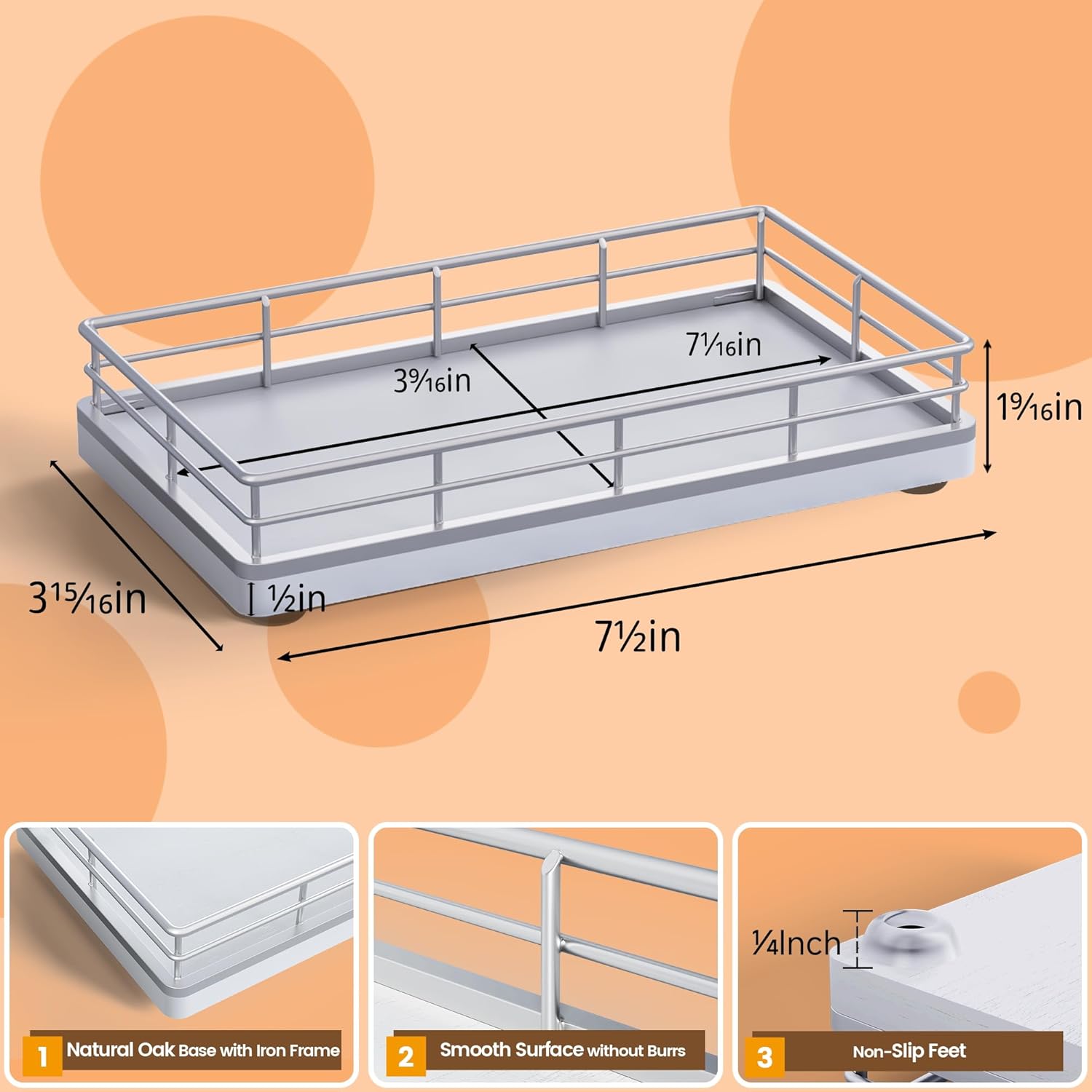 Bathroom Tray for Counter, Oak Wooden 7.5" L Vanity Tray for Jewelry Soap Cologne Organizer for Men Decorative Decor Silver
