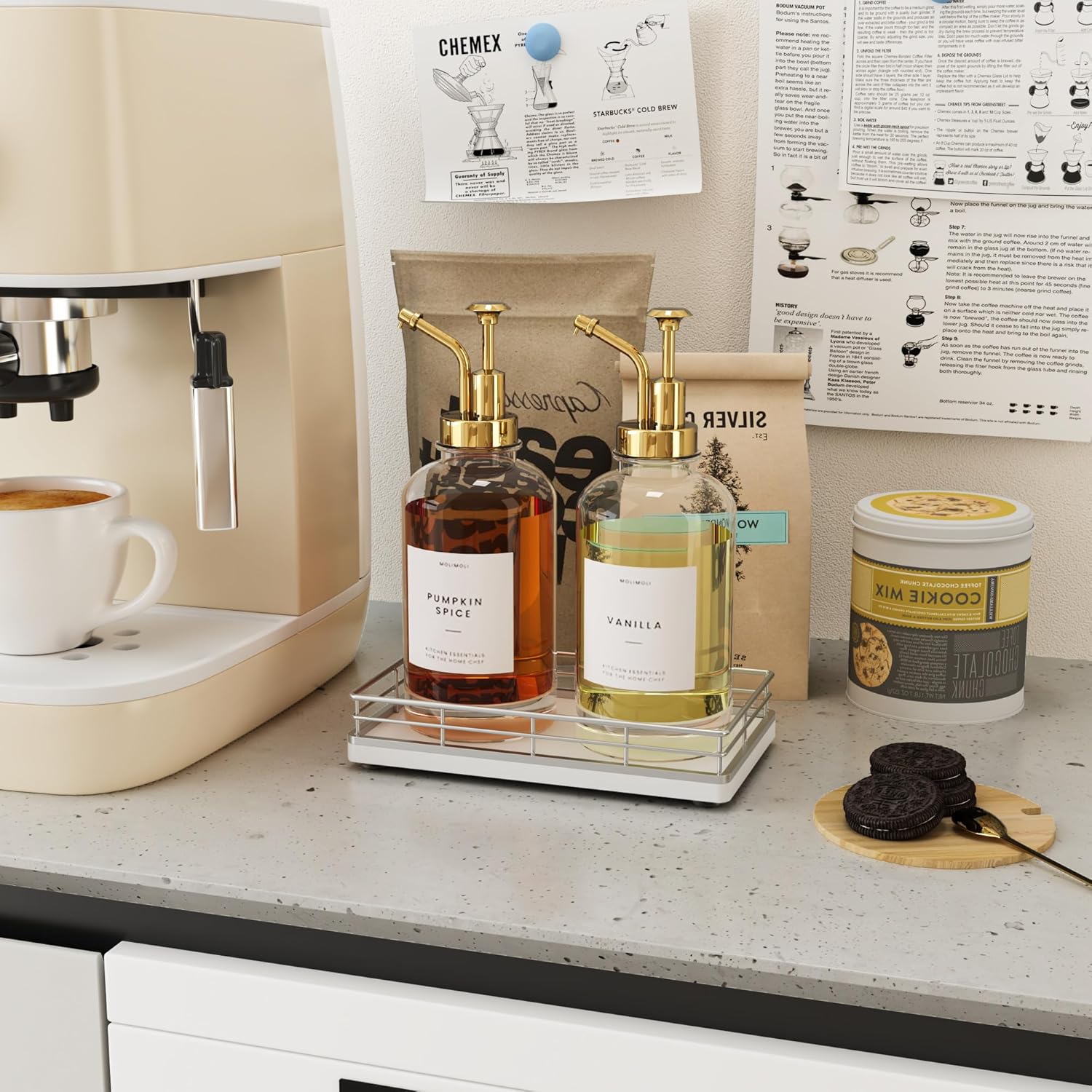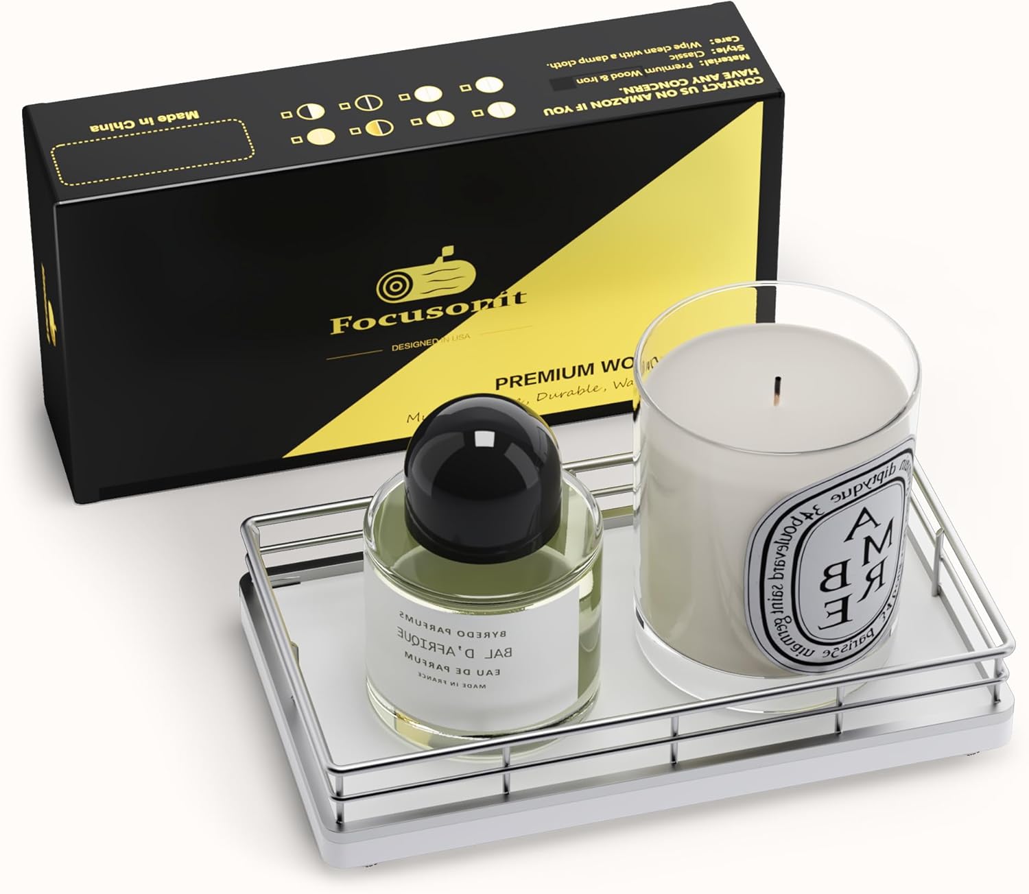 - Versatile Functionality: Elevate your daily routine with our tray for bathroom counter; Neatly arrange bathroom essentials like mouthwash with cups, toothbrushes, cotton swab, keeping your countertop tidy; Add a touch of elegance to your dresser by using the vanity tray to showcase perfumes, jewelry, and candles; The small tray can also be used to store keys, watches and change at the entrance