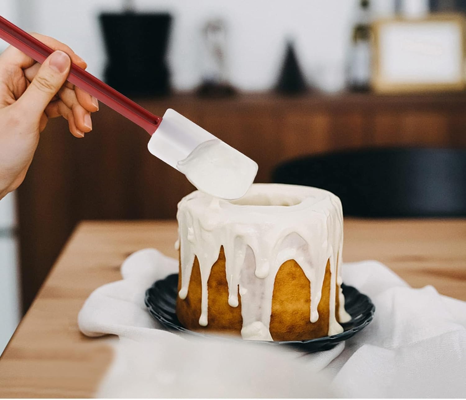 - STRONG & FLEXIBLE: This high heat silicone spoonula set, is sturdy to stir sticky dough, and soft on the edges to spoon cream from your bowl; Edges of these silicone rubber spoonulas are thin and flexible, perfect to reach the bottom of mixer bowls (which have high sides) without getting your hands sticky. Durable and strong, these silicone rubber spatulas can serve for years, with no need for special care.
