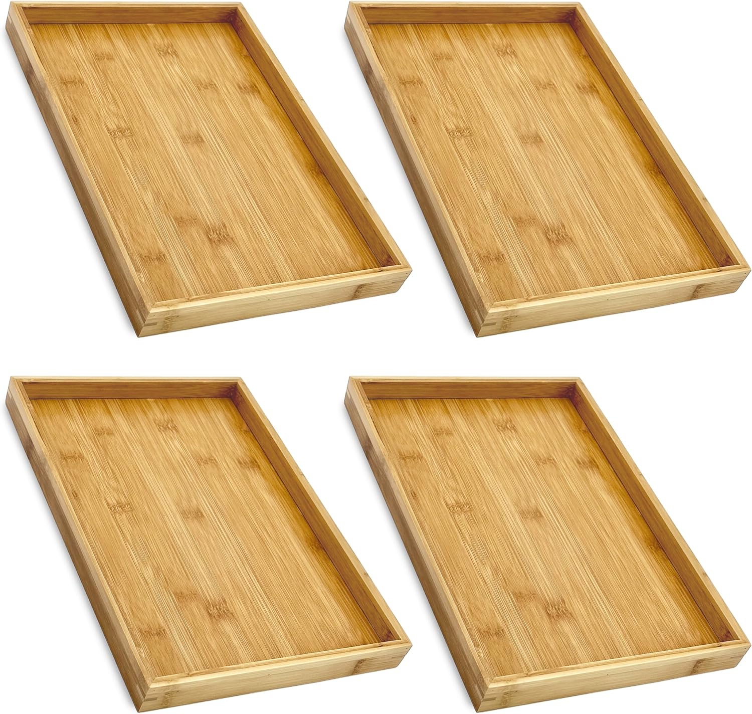 Bam & Boo (4-Pack) Natural Bamboo Rectangle Serving & Vanity Tray - for Kitchen, Bathroom, Countertop, Coffee Table (13" x 9" x 1.2")