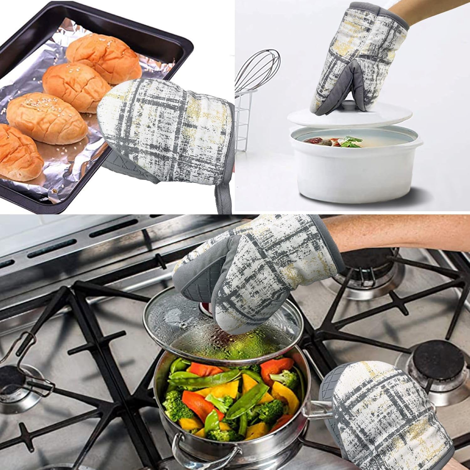 - 1.HEAT RESISTANT: The mini oven mitts made of durable,heat-resistant cotton and silicone, whether removing a pan from your oven, picking up a steaming pot from your stove or tending to a hot grill, you can rest assured that your hands will be well protected by these high quality, heat-resistant kitchen gloves.