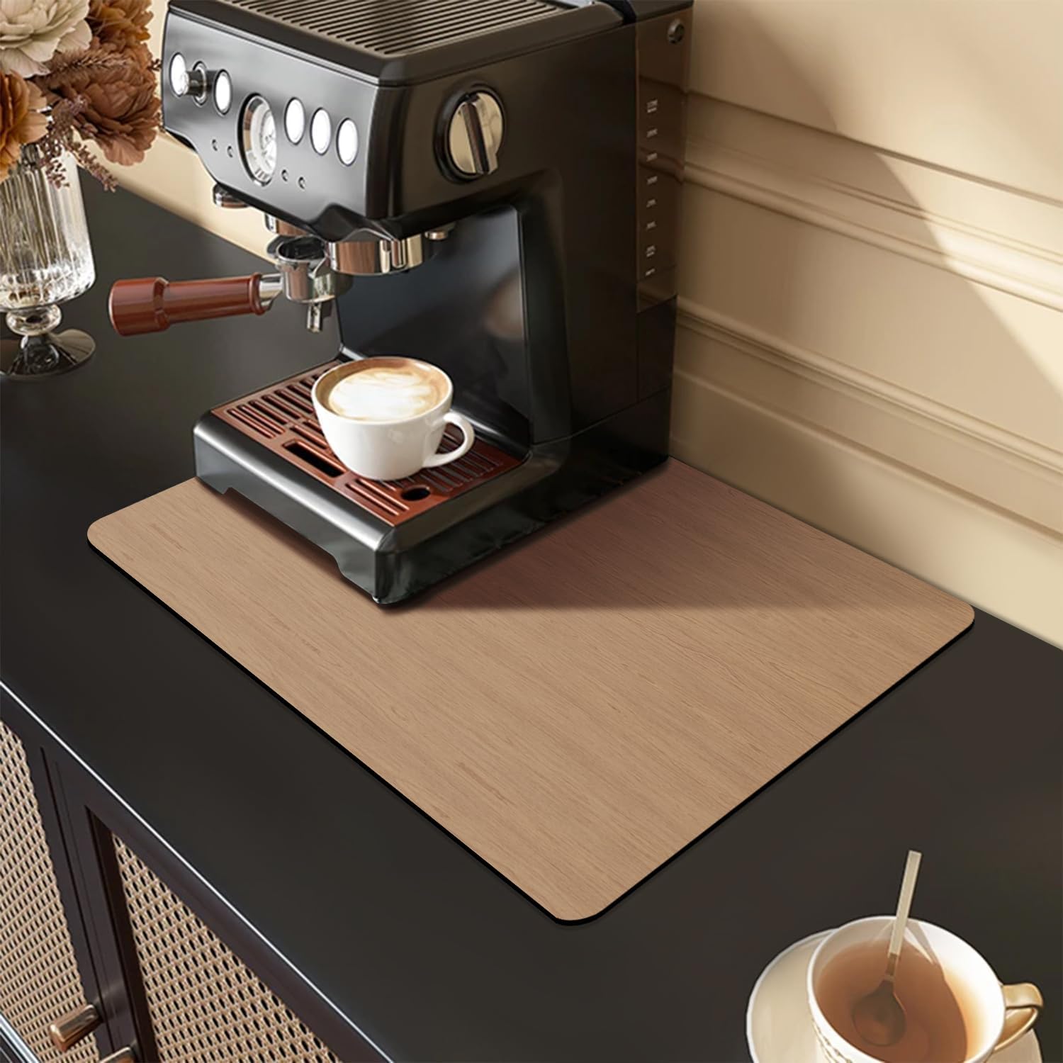 Dish Drying Mat Coffee Mat - Coffee Bar Accessories Absorbent Mat Dish Drying Mats for Kitchen Counter Sink Under Coffee Maker Espresso Machine Pot Cup Holder Easy Clean Kitchen Dish Mat 19"x12", Wood
