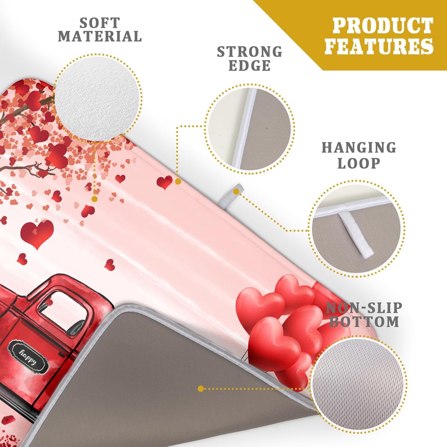 - 【Easy Storage】 The valentine dish drying mat with hanging loop, can be hung on the kitchen wall without occupying any space. This lightweight dish drying mat for kitchen counter, soft and foldable, microfiber is naturally, durable, and cleans up easily, and is effortless to clean. When not in use, the foldable drying dish mat can be placed in any drawer, cabinet or closet without taking up much kitchen space. The lightweight drying pad is also very convenient to carry.